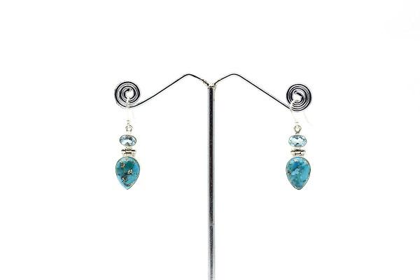 ต่างหูพลอยสีฟ้าโทแพซ สีฟ้าทองแดง สีฟ้าเทอร์ควอยซ์ ทำด้วยมือ เงินแท้ 925 สำหรับผู้หญิง สไตล์โบโฮ เครื่องประดับคุณภาพดี ขายส่ง