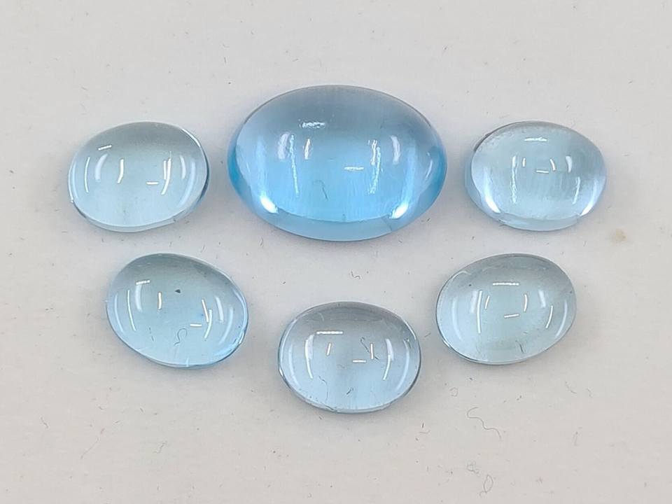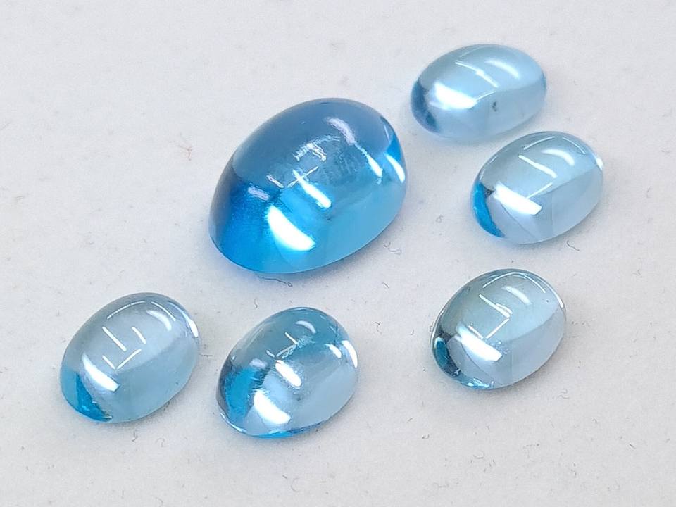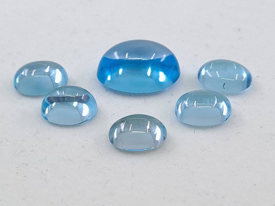 พลอยโทแพซพลอยหลวมสีฟ้าในหลากหลายขนาดรูปทรงกลมตั้งแต่7x5มม. ถึง9x12มม. สำหรับการทำเครื่องประดับที่ได้รับการรับรองจาก IGI