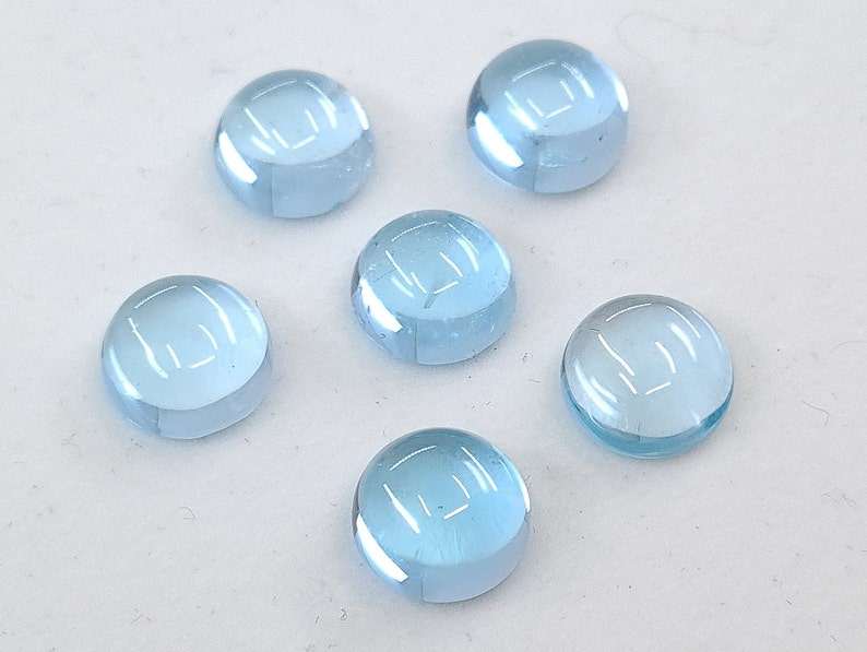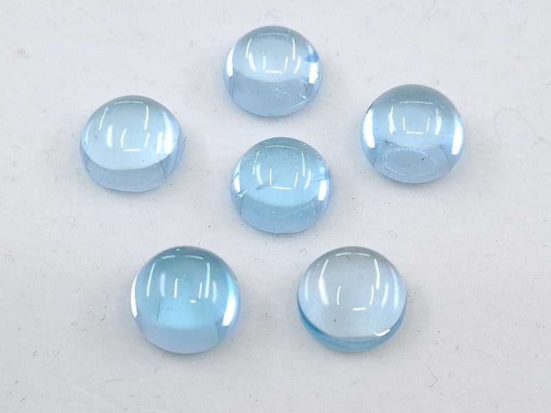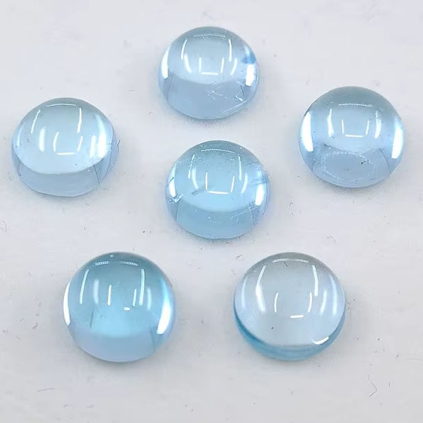 พลอยโทแพซสีฟ้าทรงกลมแบบคาโบชอง ขนาดต่างๆ 3 มม. ถึง 7 มม. สำหรับทำเครื่องประดับ
