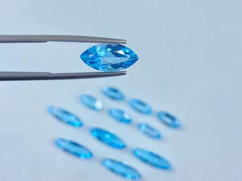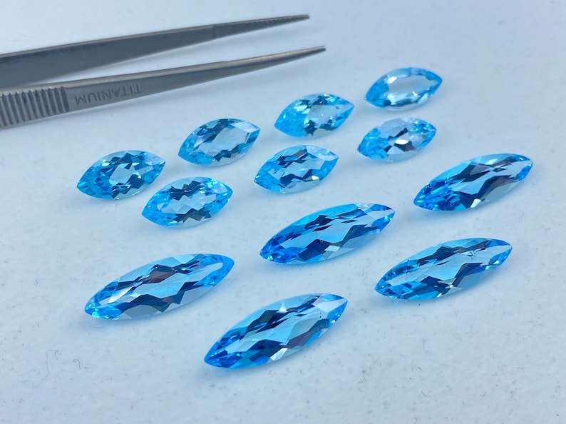 พลอยโทแพซสีฟ้าทรงมาร์คีส์เจียระไน ขนาดต่างๆ 4x2 มม. ถึง 21x7 มม. สำหรับทำเครื่องประดับ