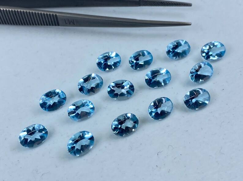 พลอยโทแพซสีฟ้าทรงรีขนาด 7x5 มม. 8x6 มม. แบบปรับขนาดแล้ว สำหรับทำเครื่องประดับจากธรรมชาติ