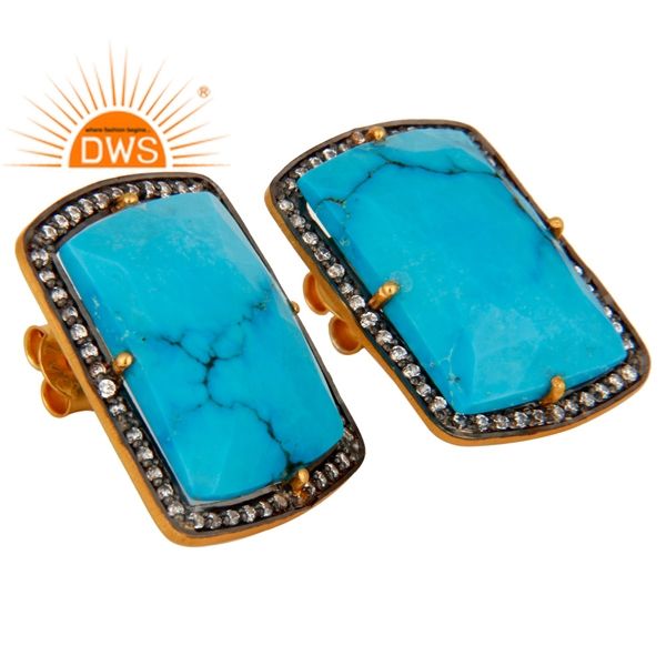 Sky Blue Turquoise Gemstone Earrings 18k Gold Plated 925 Silver Rectangle Shape Stud Earrings Jewelry Wholesale