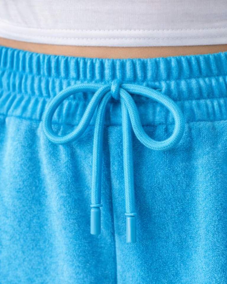 กางเกงวอร์มขายาวสีฟ้าสำหรับผู้หญิง ทรงขากว้าง ผ้าฟลีซ มีแถบข้างเอว ยางยืดพร้อมเชือกผูกเอว สวมใส่สบายทรงหลวม กางเกงจ็อกเกอร์ ชุดลำลอง