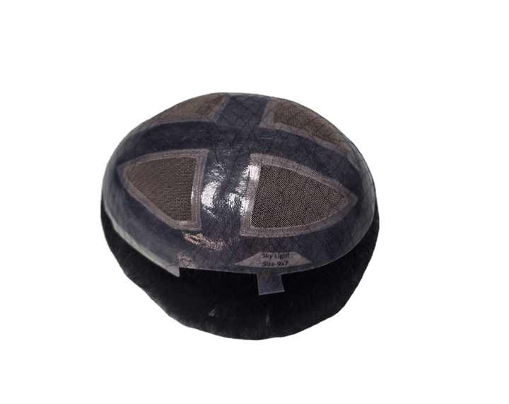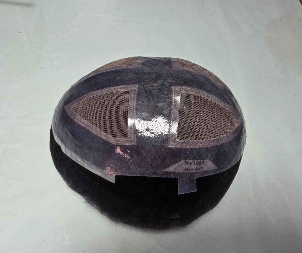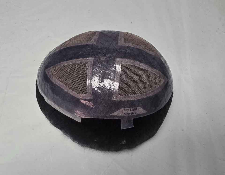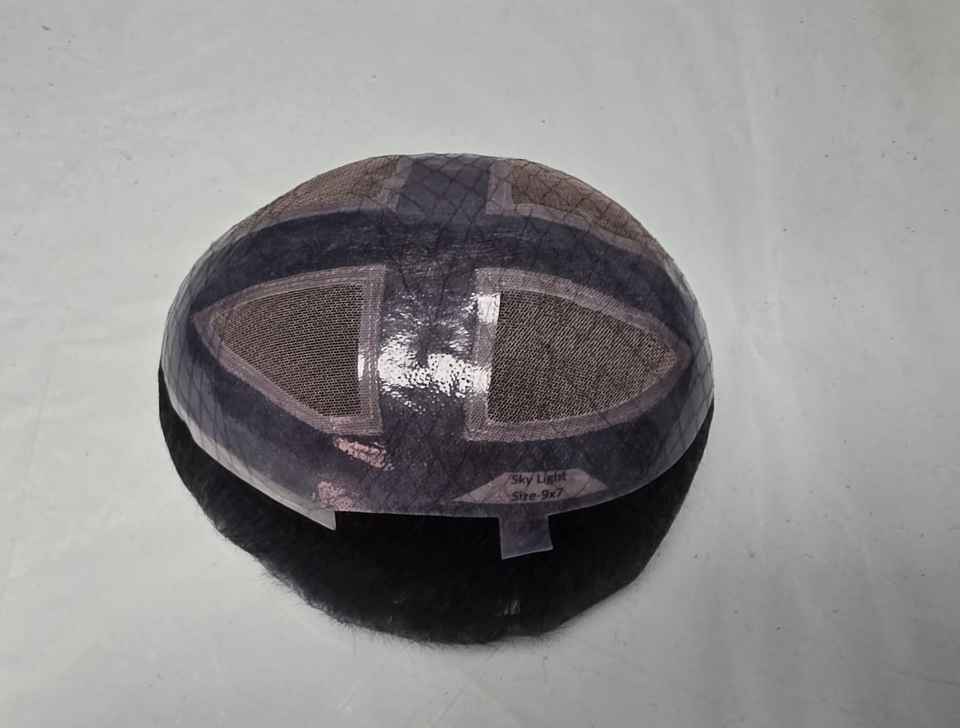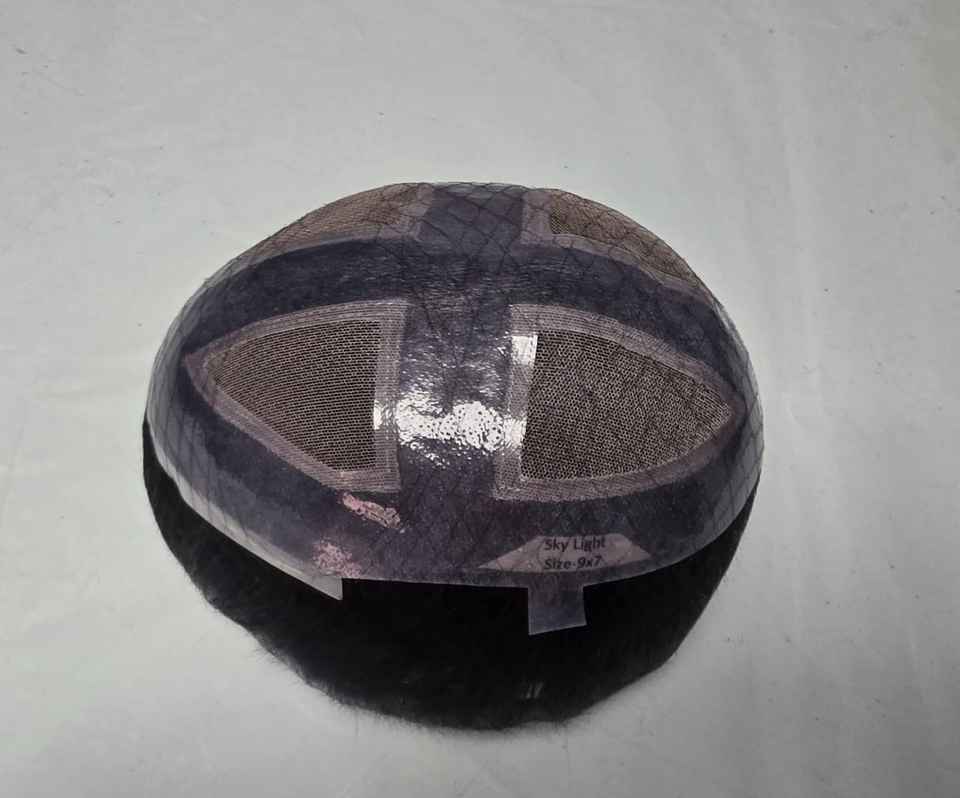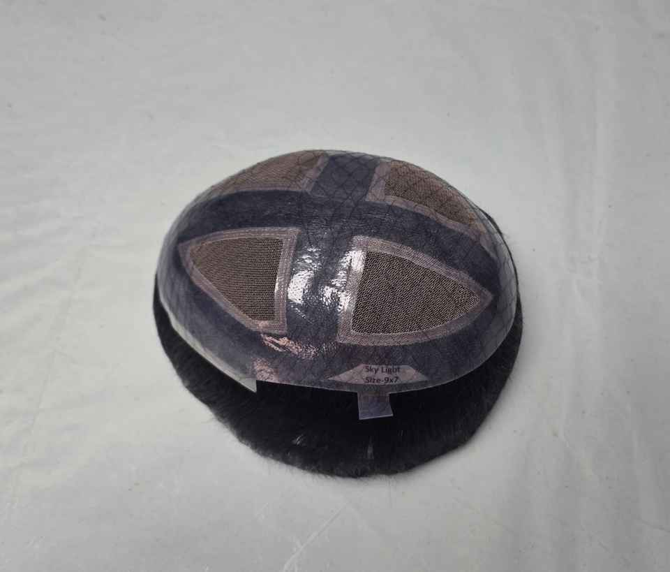 วิกผมผู้ชายด้านหน้ามีลูกไม้สีฟ้าอ่อนแบบอินเดียผม100% วิกผมคนแบบใช้วิกผมปลอมหมวก Taz hair BD