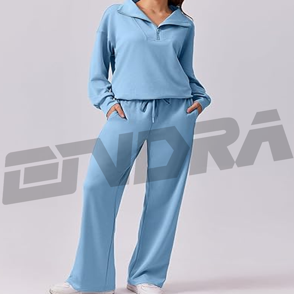 ชุดวอร์มสีฟ้าครึ่งซิปสำหรับผู้หญิง ดีไซน์เข้ารูปสวมใส่สบาย เหมาะสำหรับออกกำลังกาย แฟชั่นสตรีทแวร์ ท่องเที่ยว ให้ลุคแฟชั่นตลอดวัน