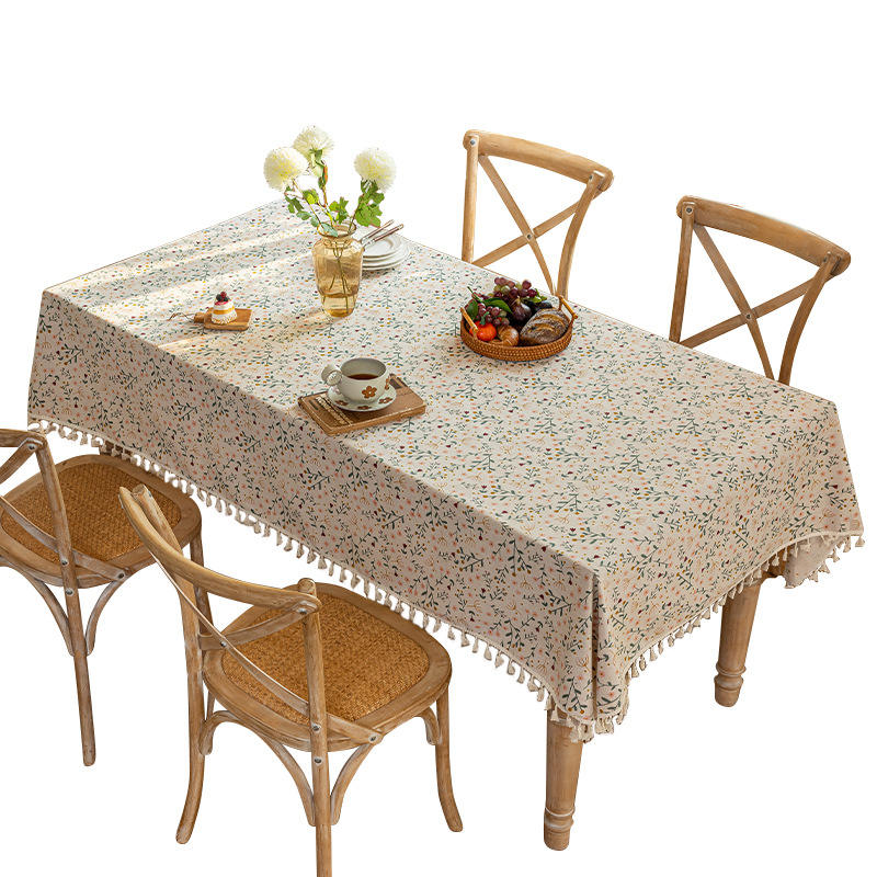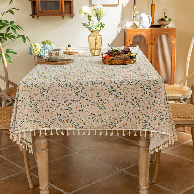 ผ้าปูโต๊ะลายผ้าลินินพิมพ์ลายพร้อมพู่ห้อย (FSZBBFMYHB)