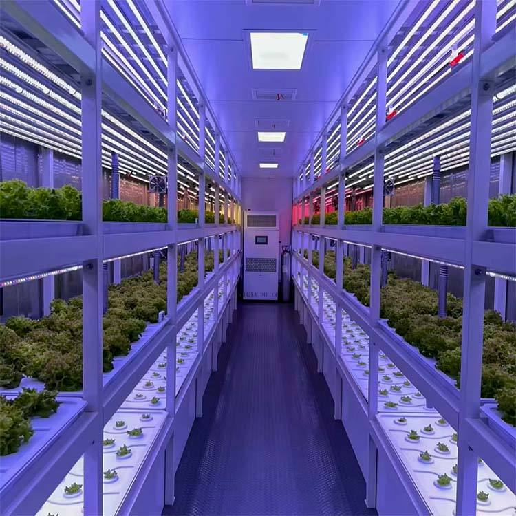 ระบบปลูกพืชในร่มเชิงพาณิชย์แบบอัตโนมัติ ไฮโดรโปนิกส์ อะควาโปนิกส์ ไมโครกรีน พร้อมมอเตอร์ในโรงเรือนปลูกพืชแบบคอนเทนเนอร์