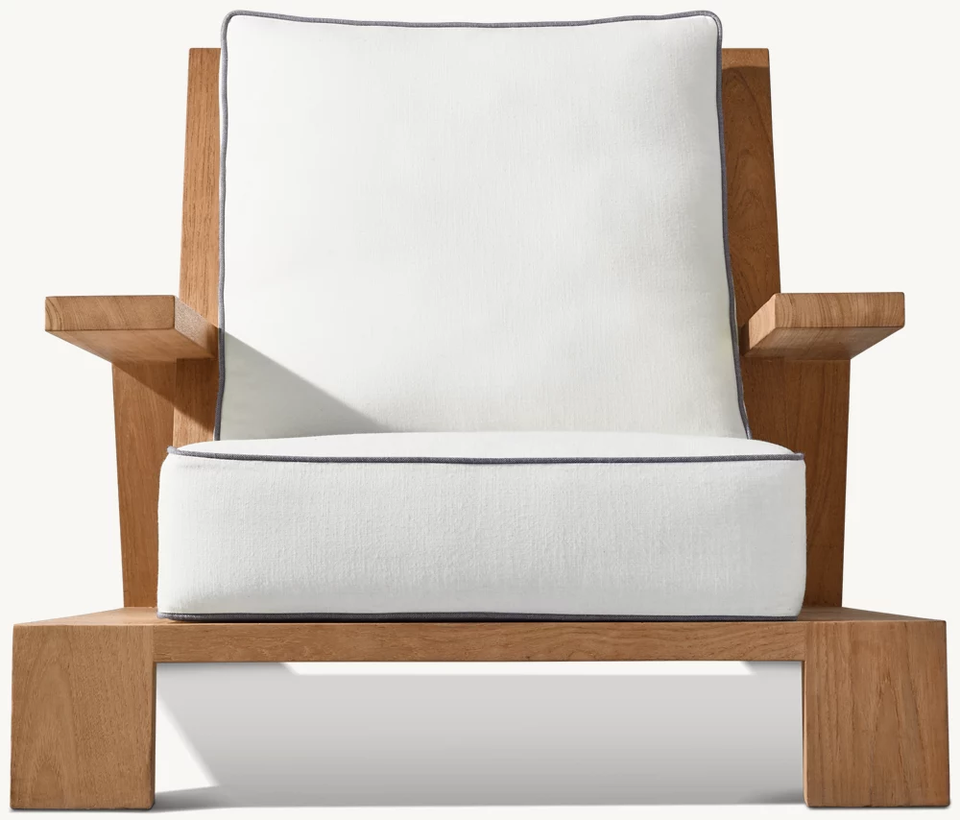 Modern Slanted Back Teak Wood Outdoor Lounge Chair with White Cushions for Villa Use