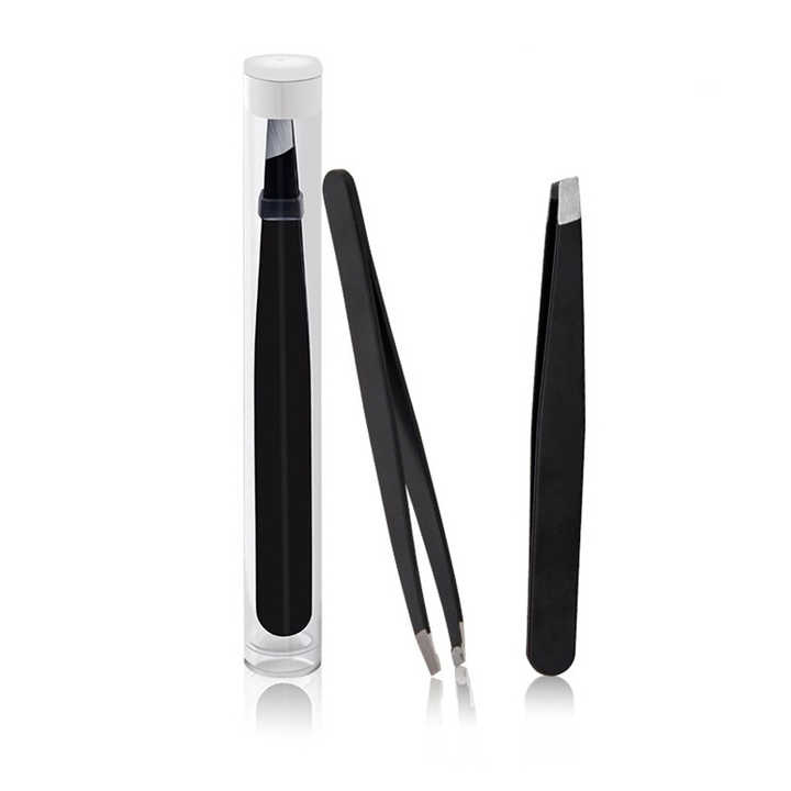 แหนบดึงขนตาคุณภาพสูง ปลายเฉียง สีดำ ทำจากสแตนเลส แหนบดึงขนคิ้ว น้ำหนักเบา ทนทาน มีตัวเลือกสกรีนโลโก้