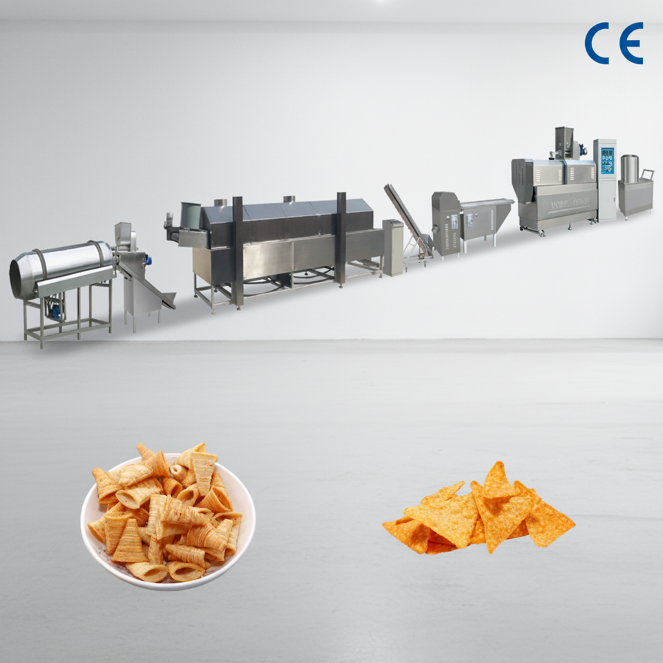 เครื่องทำชิปส์โดริโทสแบบเฉียง เครื่องอัดรีดอาหารทำชิปส์ข้าวโพด ขนมพัฟ ขนมกุ้งอบกรอบ เครื่องทำนาโชส์ชิปส์