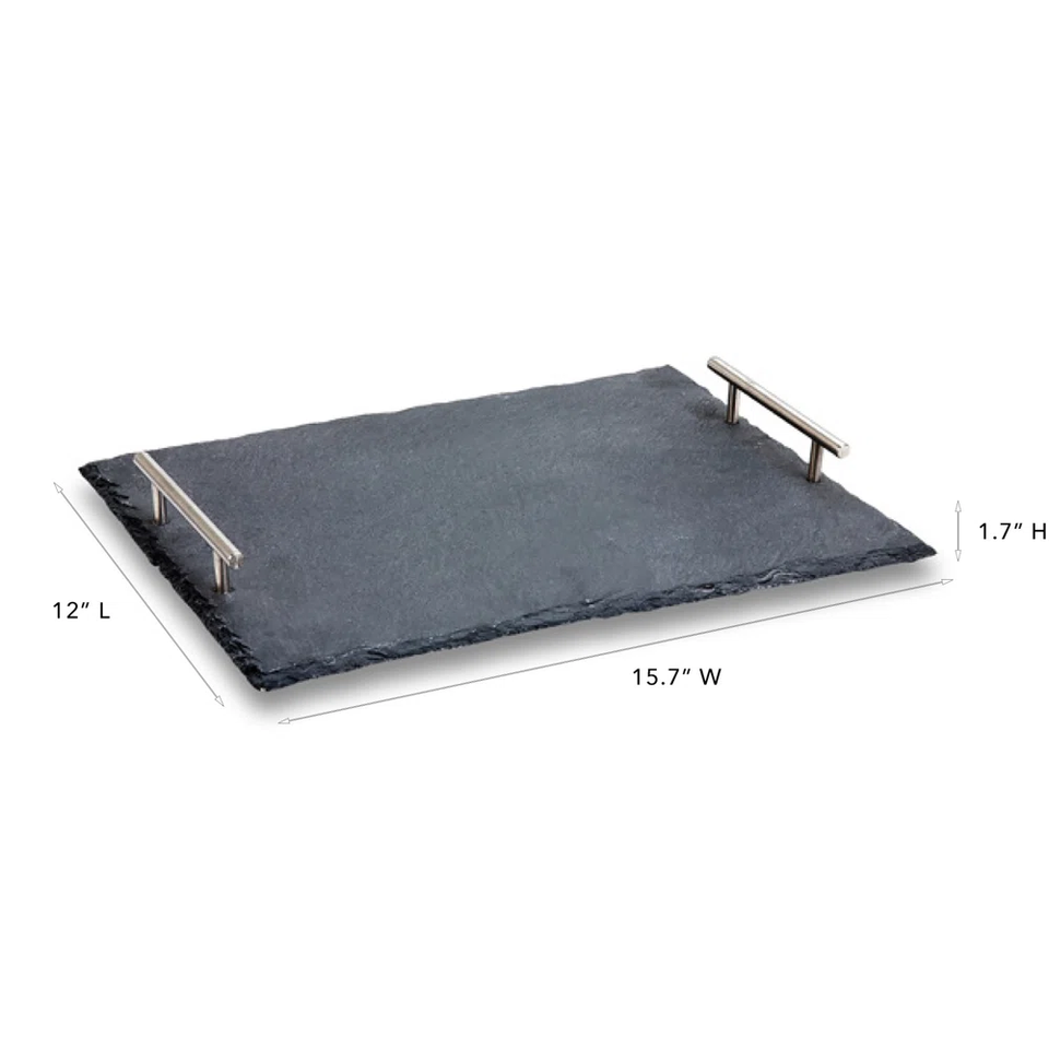 แผ่นรองจานทรงสี่เหลี่ยมผืนผ้าทำจากหินธรรมชาติแผ่นชีสแบบมีด้ามจับทำจากสเตนเลสสตีล