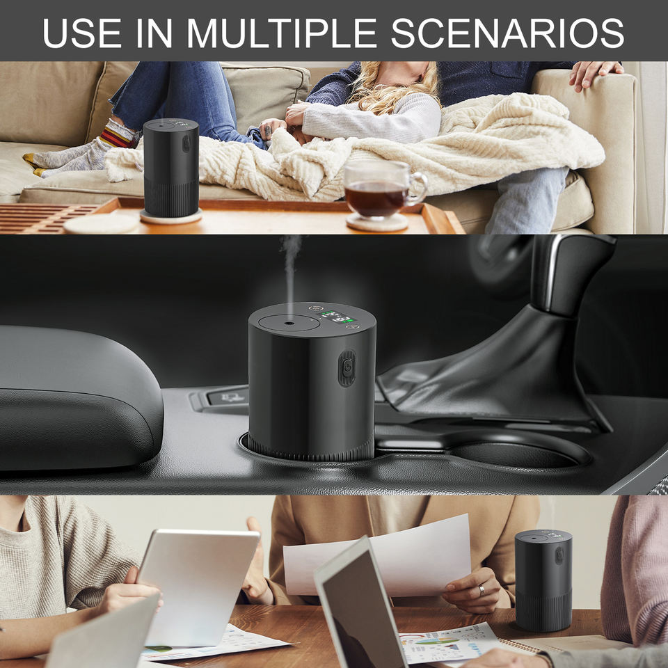 เครื่องกระจายกลิ่นแบบพกพาสำหรับบ้าน สำนักงาน ใช้งานได้โดยไม่ต้องใช้น้ำ ใช้กับน้ำมันหอมระเหย ตั้งเวลาได้ ชาร์จซ้ำได้ ใช้ในรถยนต์ได้