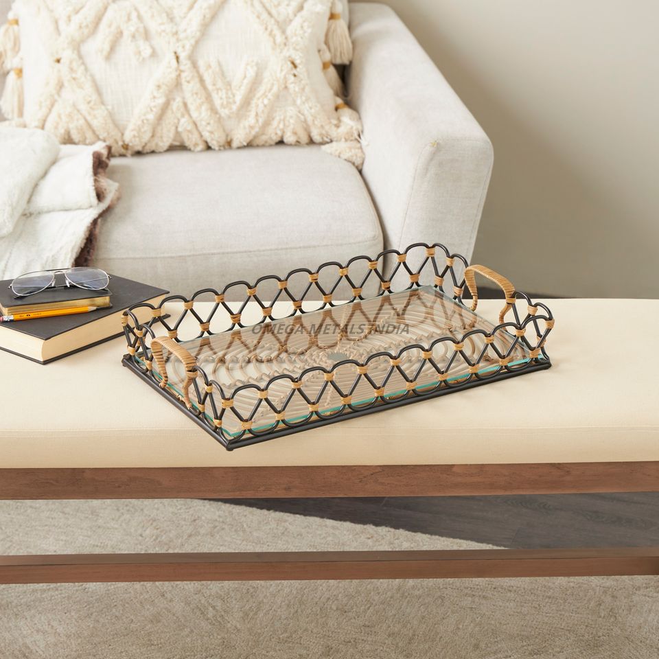 Sleek Black Metal Serving Tray Set With Elegant Gold Accents and Unique Curved Design Perfect for Stylish Home Organization