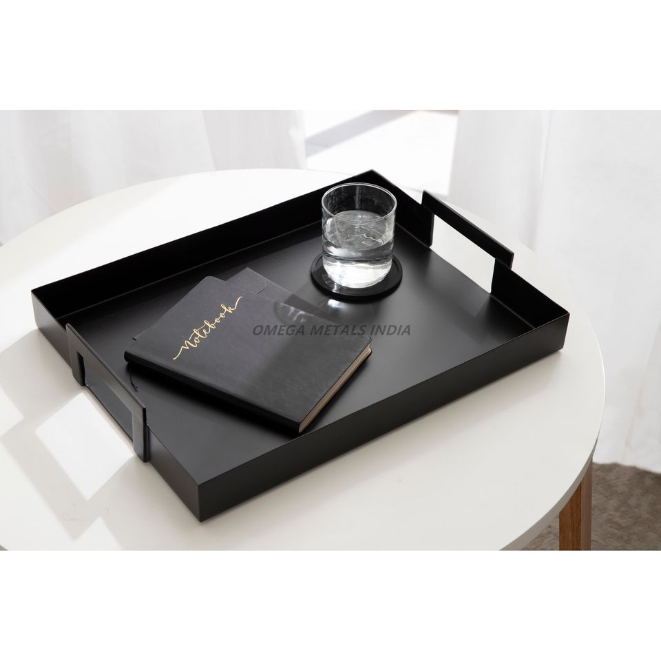ถาดเสิร์ฟทรงสี่เหลี่ยมสีดำเงาพร้อมการออกแบบที่ทันสมัยเหมาะสำหรับการจัดระเบียบสิ่งของจำเป็นและแสดงเครื่องประดับที่มีสไตล์