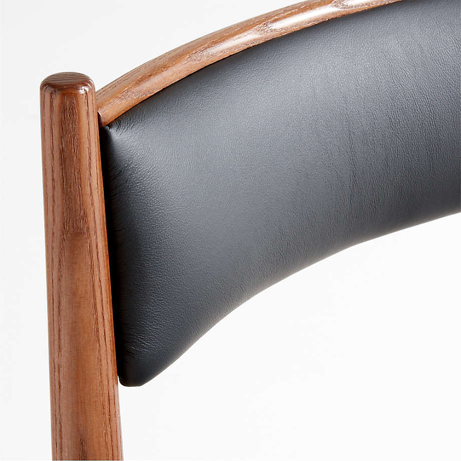 เก้าอี้รับประทานอาหารเงางามพร้อมกรอบไม้สีเข้มและเบาะรองนั่งสีดำ