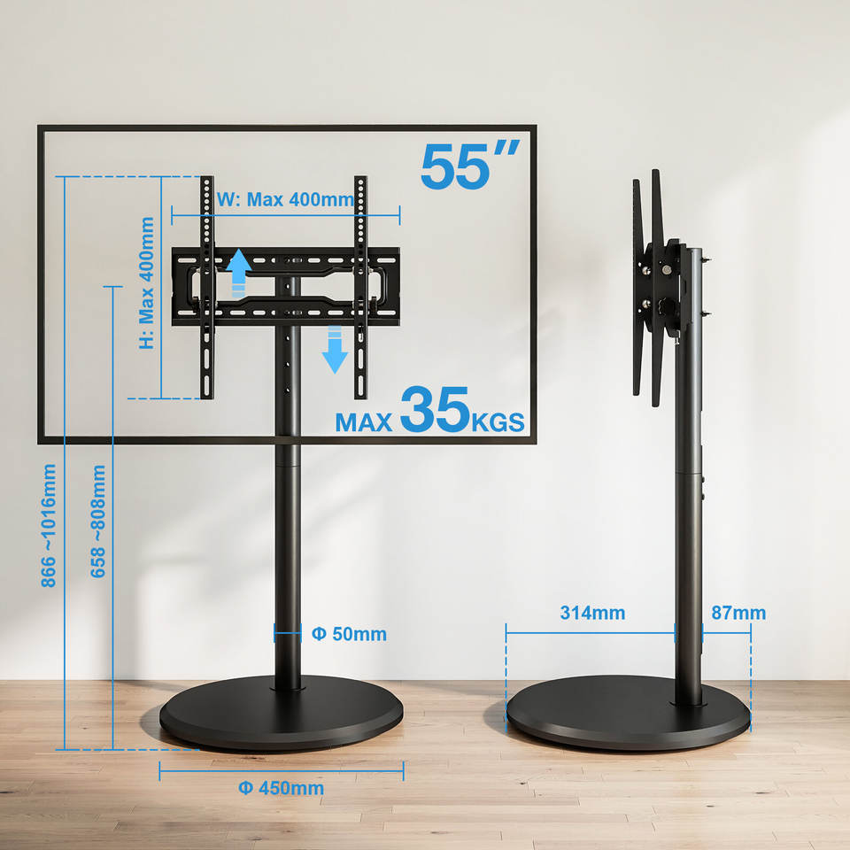 ขาตั้งทีวีพื้นเรียบ32 "-55" พร้อมโหลด35กก. ฐานไม้แข็ง100x100-400x400 VESA ปรับความสูงได้และสายเคเบิล