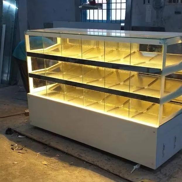 เคาน์เตอร์โชว์ขนมหวานกระจกใสพร้อมไฟ LED สำหรับจัดแสดงขนมหวานและของหวานต่างๆ
