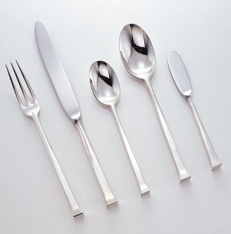 ชุดมีดสแตนเลสแปรงพร้อมส้อมมีดและช้อนด้ามยาวดีไซน์ทันสมัยเงางาม