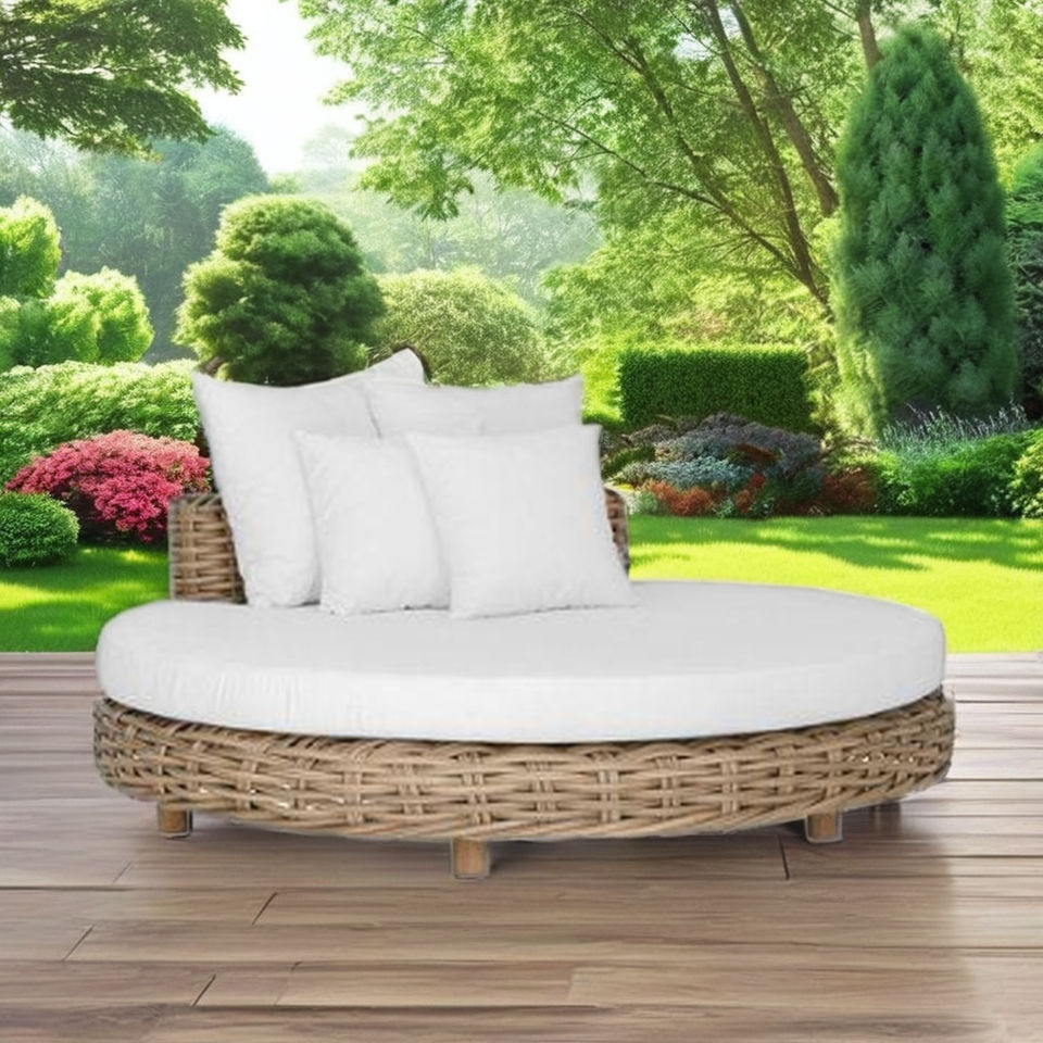 เตียงนอนเล่นหวายสุดทันสมัยสำหรับพื้นที่กลางแจ้งดีไซน์มินิมอลที่แสนสบายสำหรับระเบียงอพาร์ตเมนต์เบาะฟองน้ำสำหรับพักผ่อนริมสระน้ำ