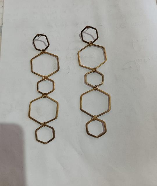 ต่างหูคลื่นสีทองเงาวาววาวเครื่องประดับแฟชั่นทองเหลืองสำหรับผู้หญิงที่มีดีไซน์โค้งทันสมัยจากนานาชาติ