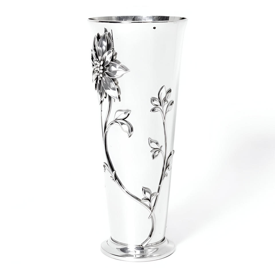 แจกันดอกไม้สแตนเลสสีเงินเงางาม ดีไซน์ลายดอกไม้แบบนูนละเอียด ทันสมัย เหมาะสำหรับตกแต่งบ้านและสำนักงาน ทรงเรียวขัดเงา แจกันสำหรับงานแต่งงาน
