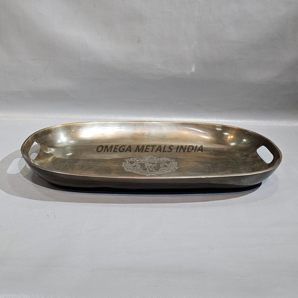 ถาดตกแต่งสีเงินเงาทรงรีและด้ามจับแบบคัตเอาท์ใช้งานได้สมบูรณ์แบบสำหรับการแสดงขนมและของตกแต่ง