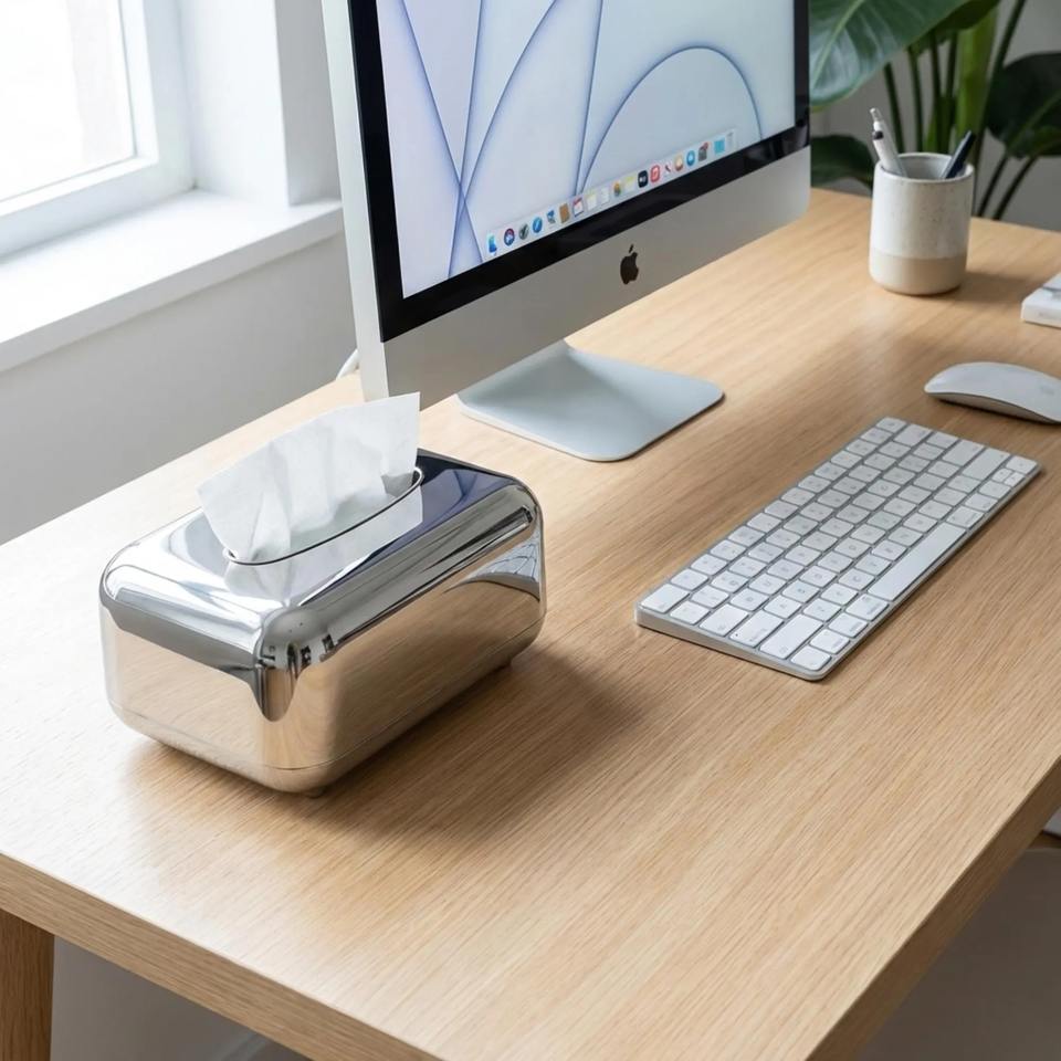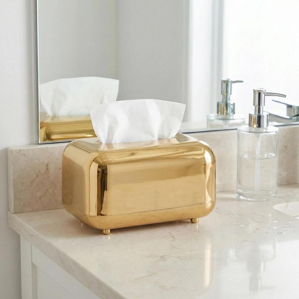 ที่ใส่กระดาษทิชชูทรงสี่เหลี่ยมผืนผ้าสีเงินเงางาม เหมาะสำหรับโต๊ะกาแฟ ห้องรับแขก แผนกต้อนรับโรงแรม และการใช้งานประจำวัน จากอินเดีย