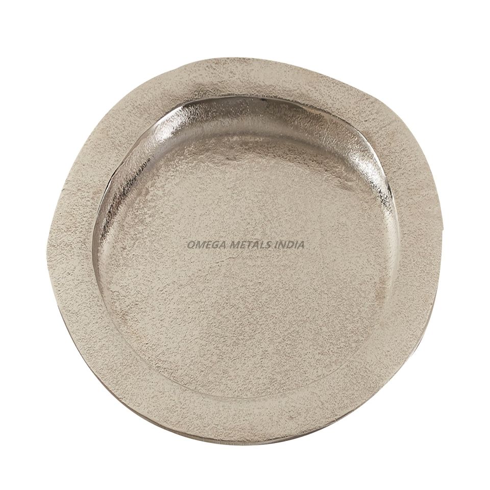 ถาดเสิร์ฟทรงไข่สีเงินเงางามพร้อมพื้นผิวขัดเงาและการออกแบบที่หรูหราเหมาะสำหรับการแสดงขนมและของตกแต่ง