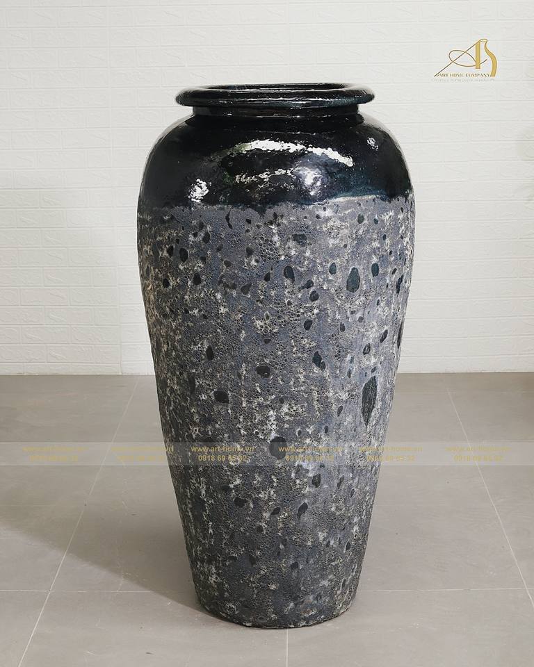 GL100H132-BLO หม้อเซรามิกเคลือบสีดำ-ดำแบบเงาทันสมัยสำหรับตกแต่งสวนในบ้านและงานจัดแสดงศิลปะ