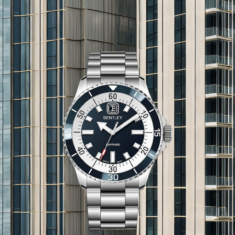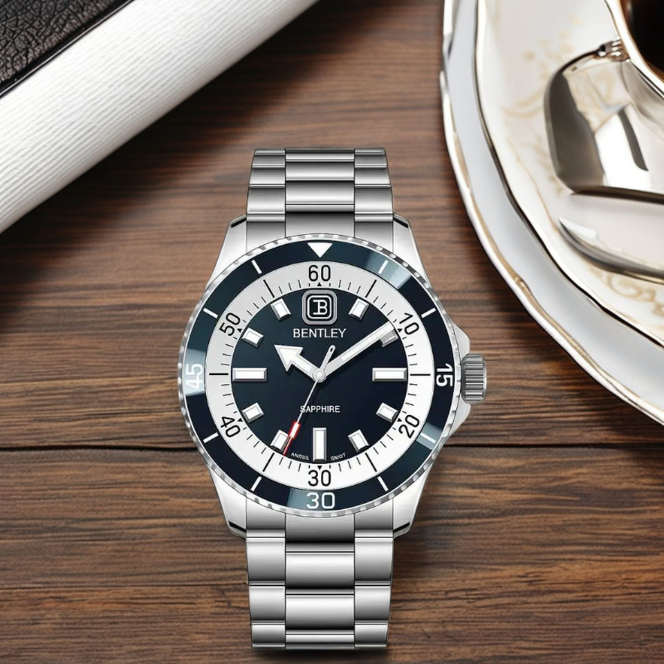 นาฬิกาควอตซ์สแตนเลสสตีลเรียบหรู พร้อมกระจกแซฟไฟร์และหน้าปัดแบบเข็ม ทนน้ำได้ 10 ATM ของขวัญสุดเก๋