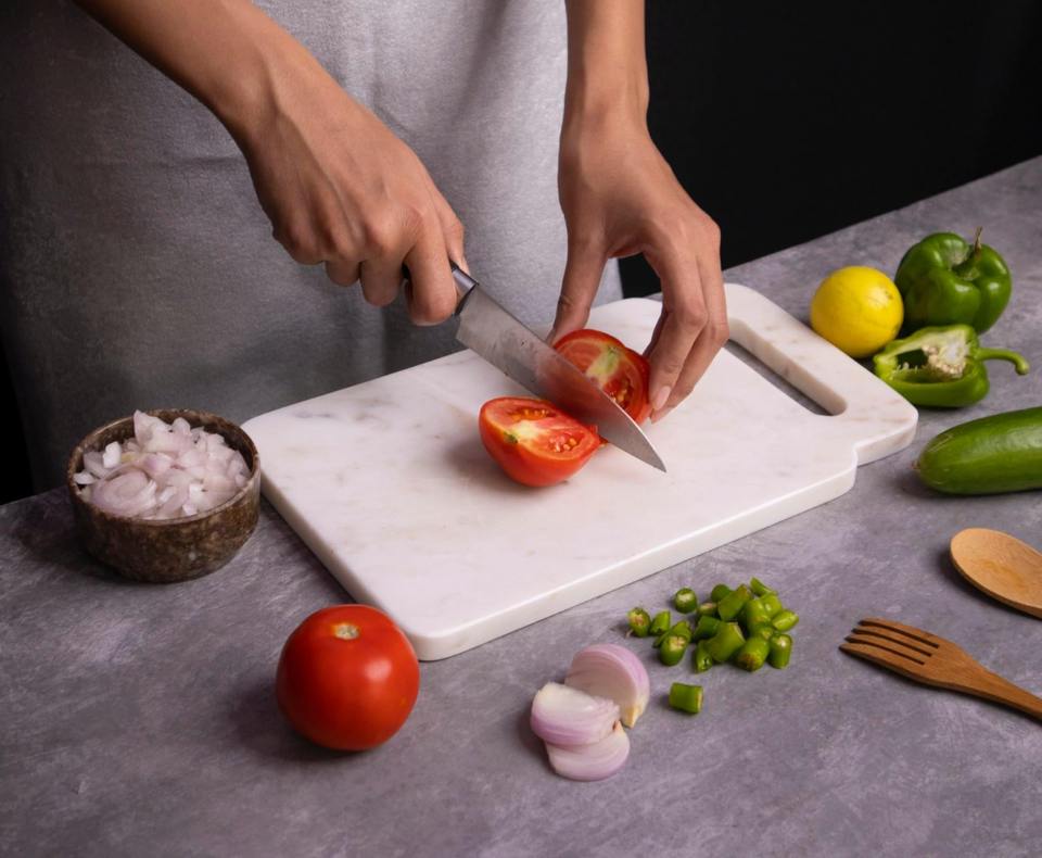เขียงสไตล์มินิมอลสีขาวทันสมัยดีไซน์เนอร์แบบพรีเมี่ยมสำหรับใช้เตรียมอาหารและวางบนโต๊ะในห้องครัว