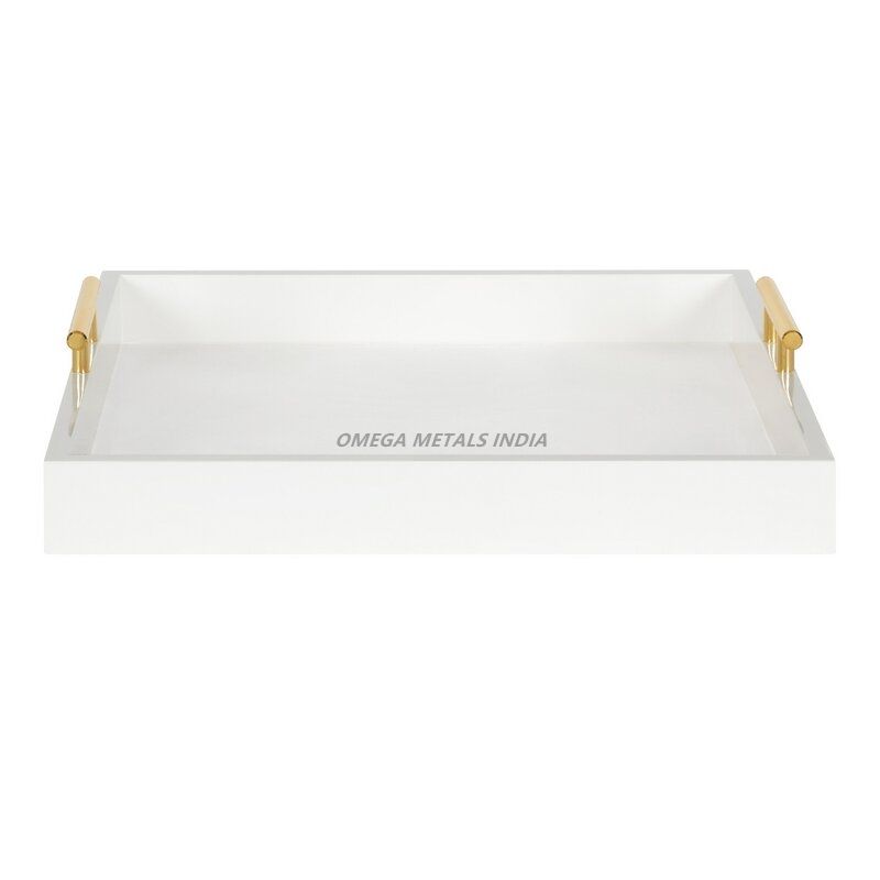 ถาดเสิร์ฟทรงสี่เหลี่ยมสีขาวแบบพรีเมี่ยมพร้อมที่จับสีทองหรูหราเหมาะสำหรับการนำเสนออาหารและของตกแต่งอย่างมีสไตล์