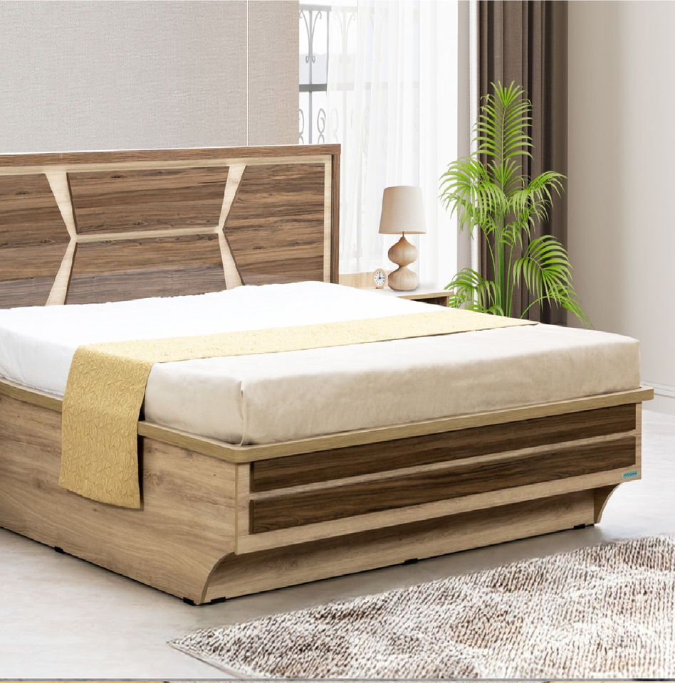 เตียงทันสมัย ดีไซน์เรียบหรู สองสี พร้อมหัวเตียงลายเรขาคณิต โครงเตียงเตี้ย จำหน่ายในราคาขายส่ง