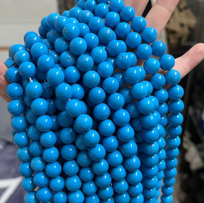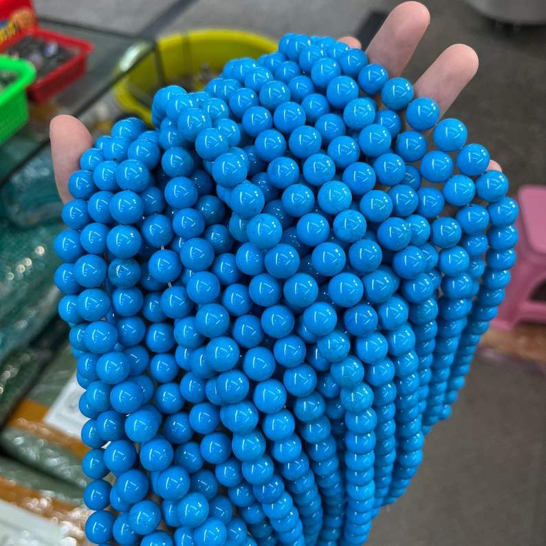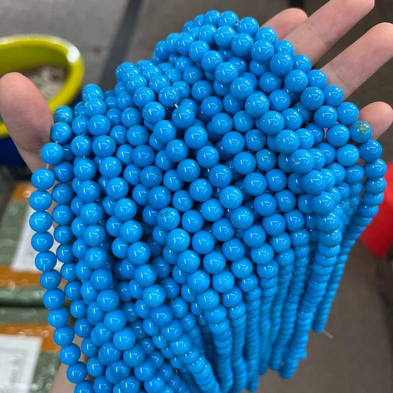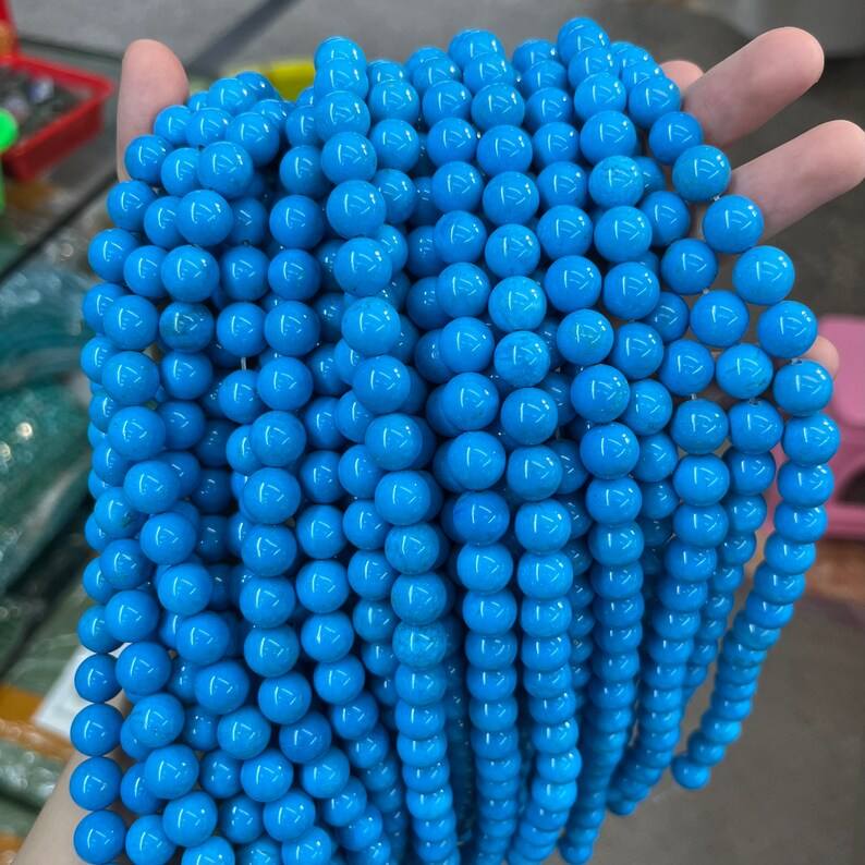 ลูกปัดทรงกลมสีฟ้าเทอร์ควอยซ์ Sleeping Beauty สำหรับทำเครื่องประดับ จำนวนมาก