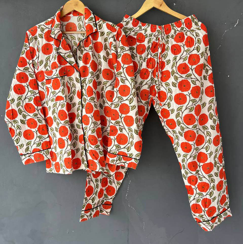 ชุดนอนผ้าฝ้ายผ้าฝ้ายสำหรับผู้หญิงชุดนอนทำมือ