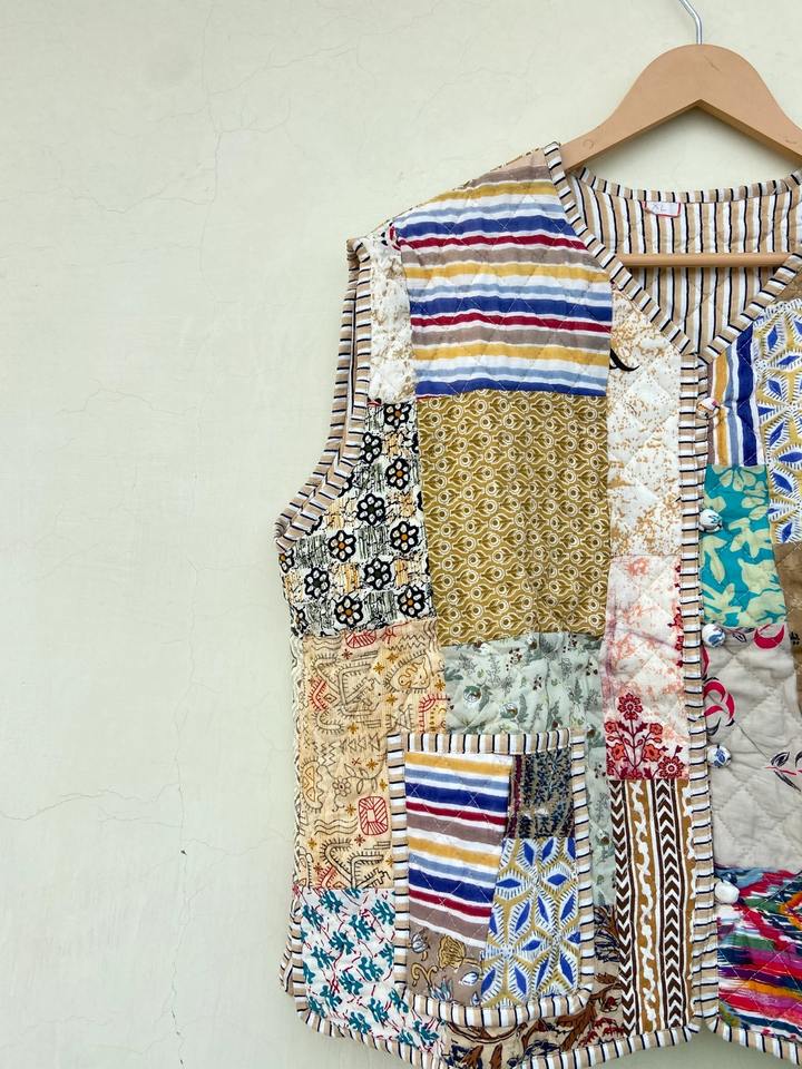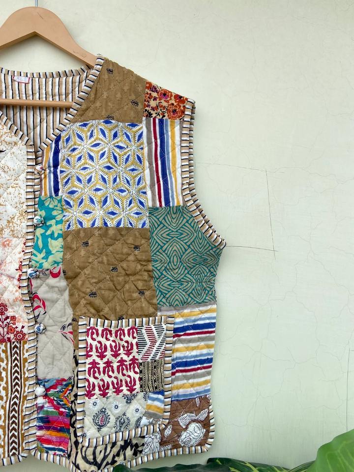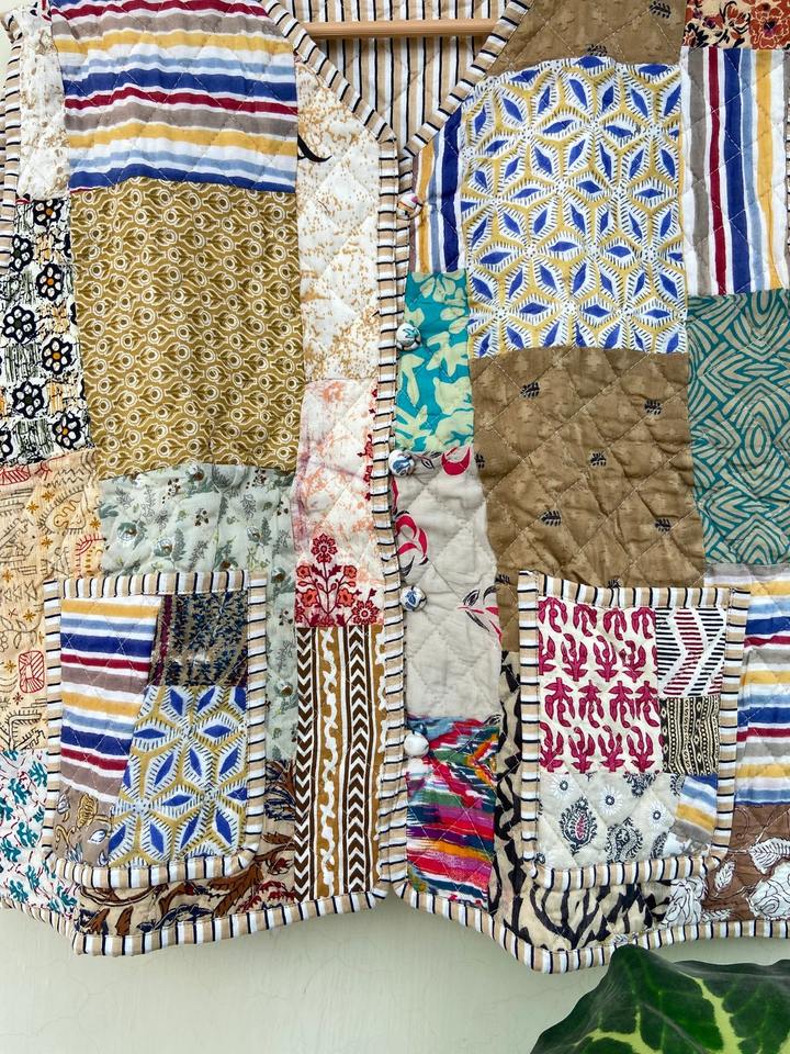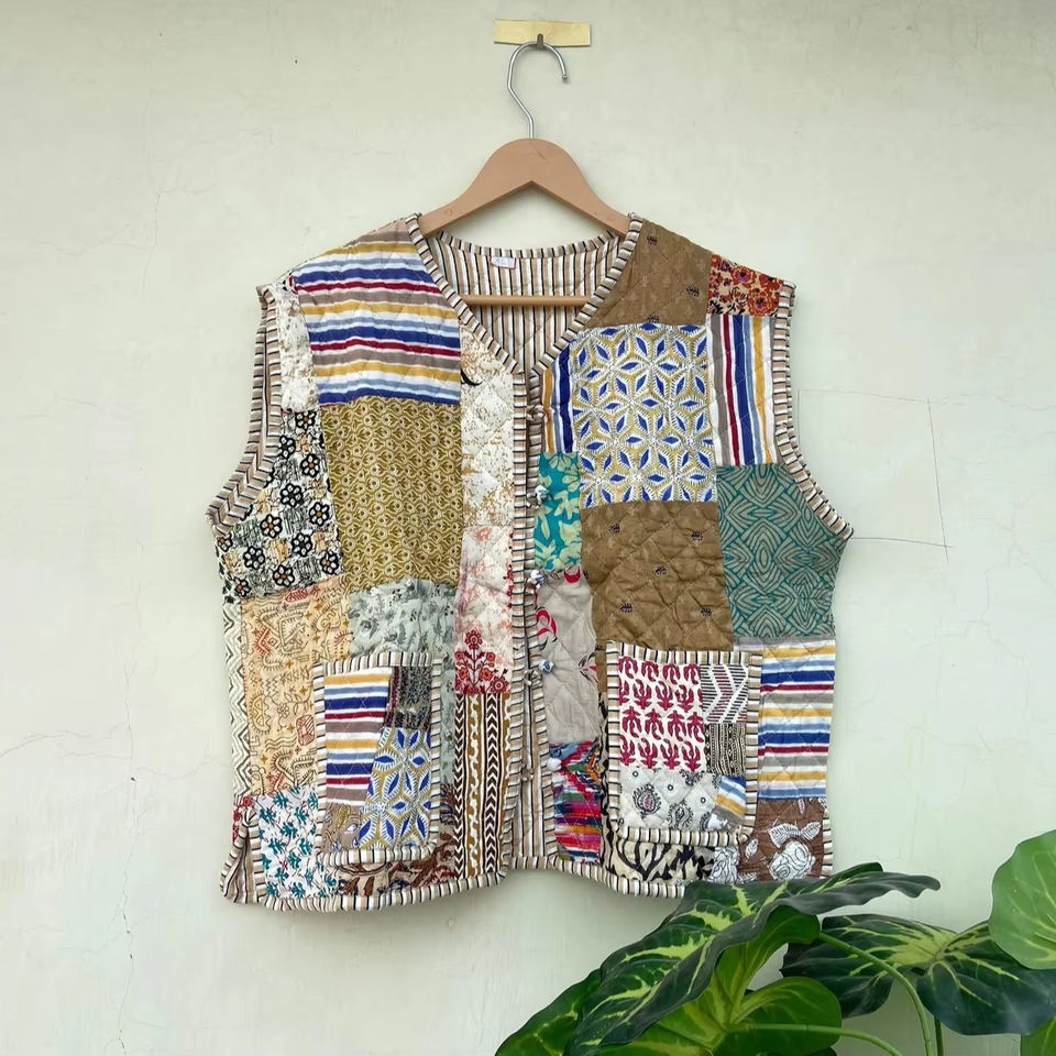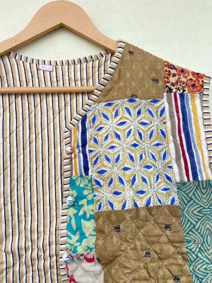 เสื้อโค้ทเสื้อกั๊กผ้าฝ้ายเย็บปะต่อ