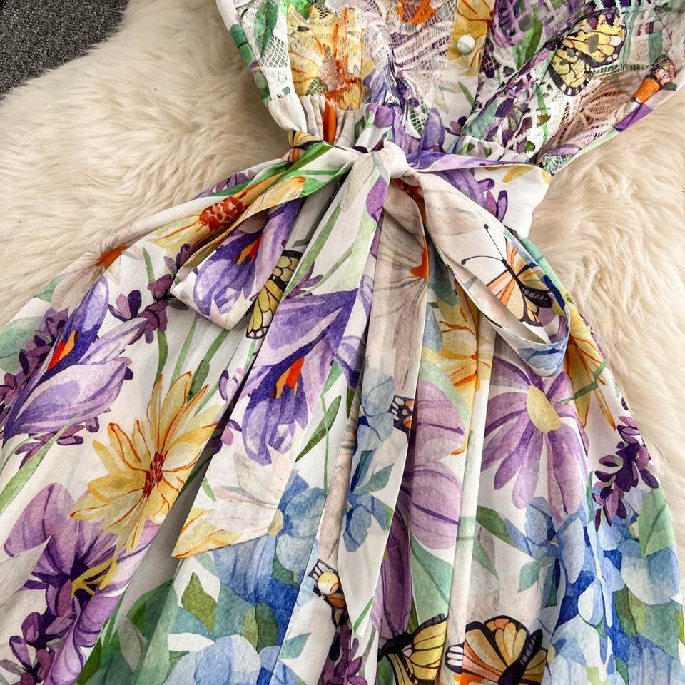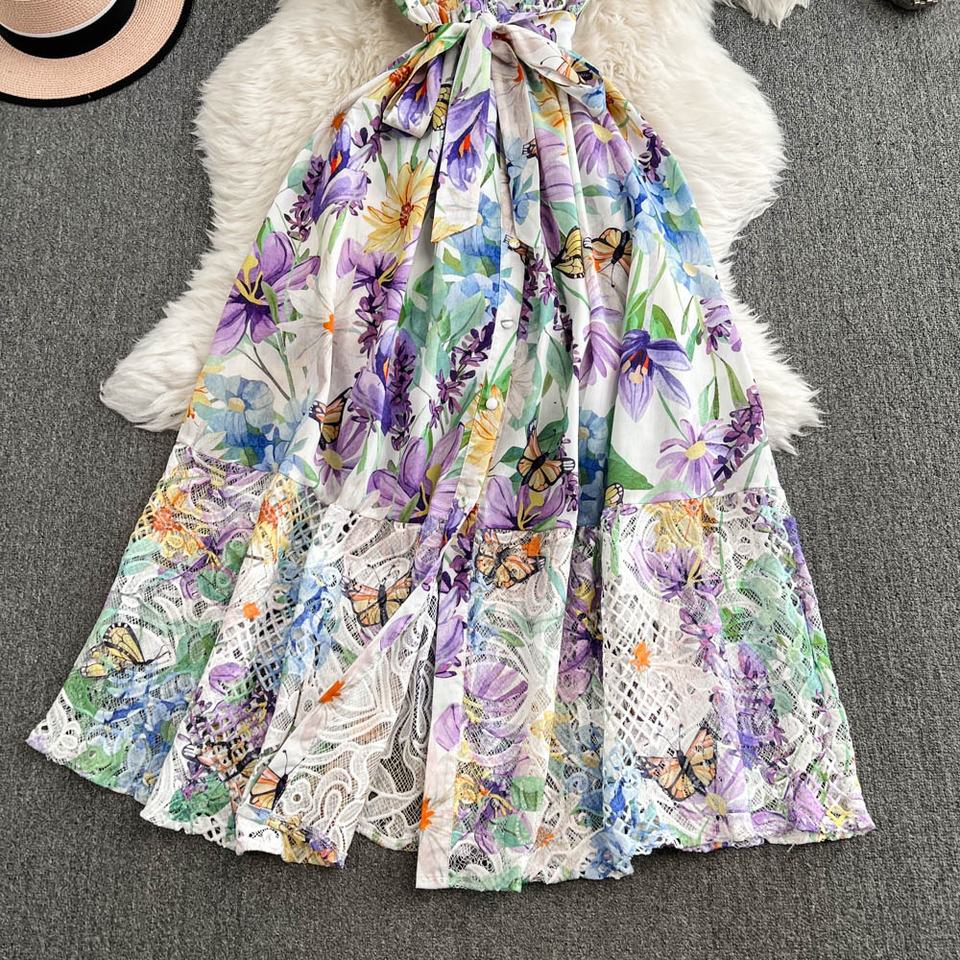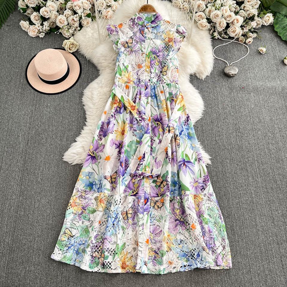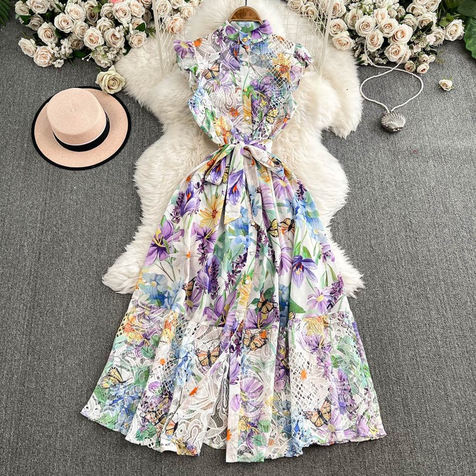 ชุดเดรสแขนกุดสำหรับผู้หญิง2025ฤดูร้อนสไตล์ใหม่คอตั้งยาวปานกลางกระโปรงขอบแต่งระบายสไตล์ Kikyo