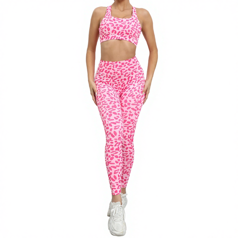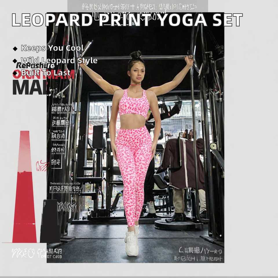 เสื้อกล้ามแบบผูกคอ ลายเสือดาว ระบายอากาศได้ดี ชุดโยคะออกกำลังกายสำหรับผู้หญิง ยกกระชับสะโพก เอวสูง ชุดฟิตเนส ชุดกีฬา