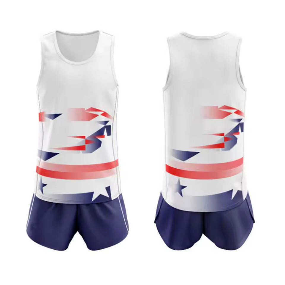 ชุดเครื่องแบบวิ่งเสื้อเจอร์ซีย์แขนกุดชุดยูนิฟอร์มสีระเหิดมีเอกลักษณ์พร้อมขนาดพิเศษเป็นมิตรต่อสิ่งแวดล้อม
