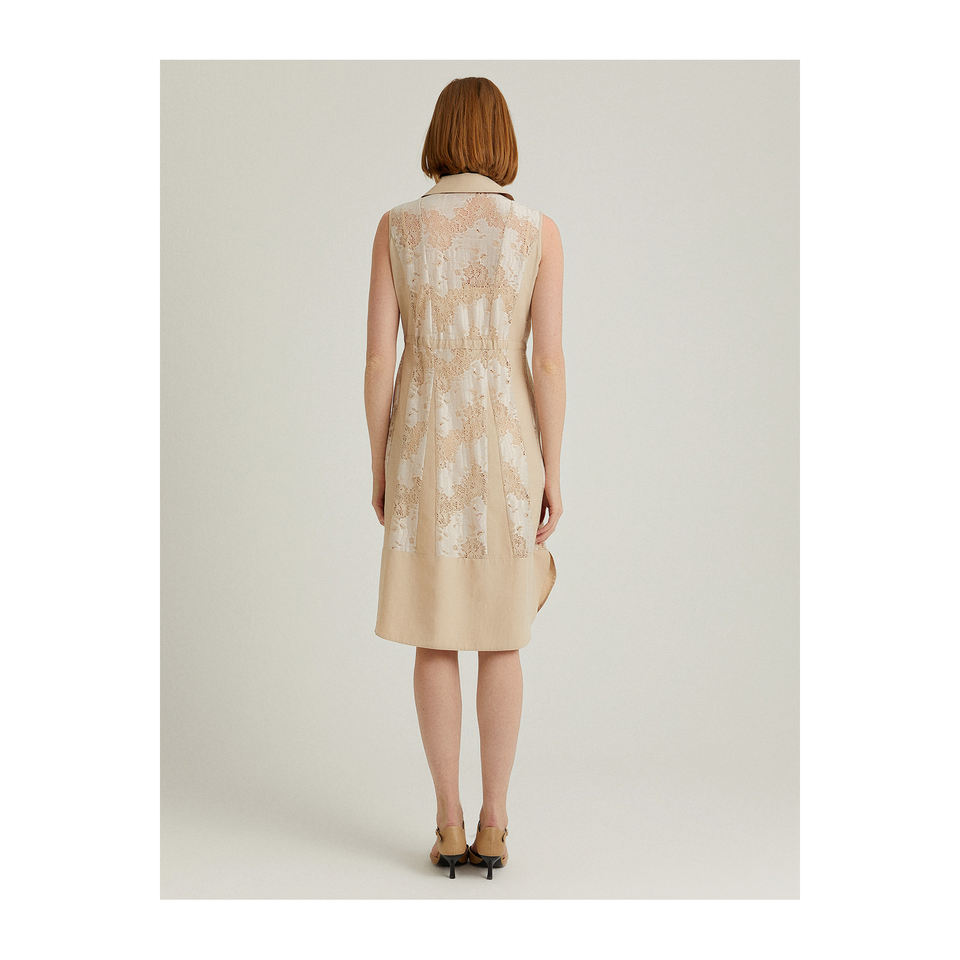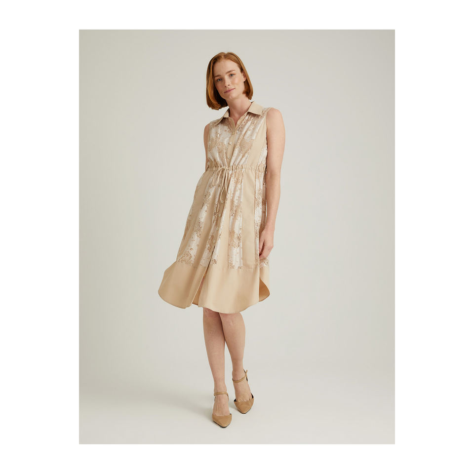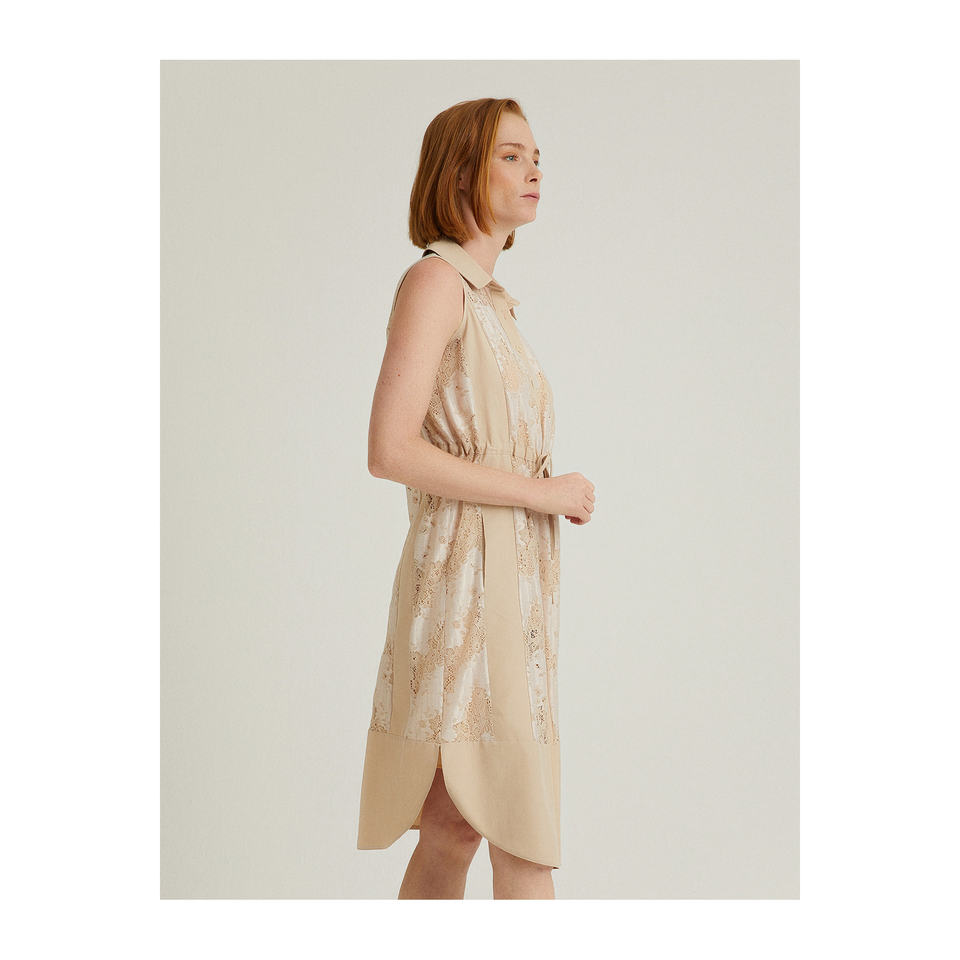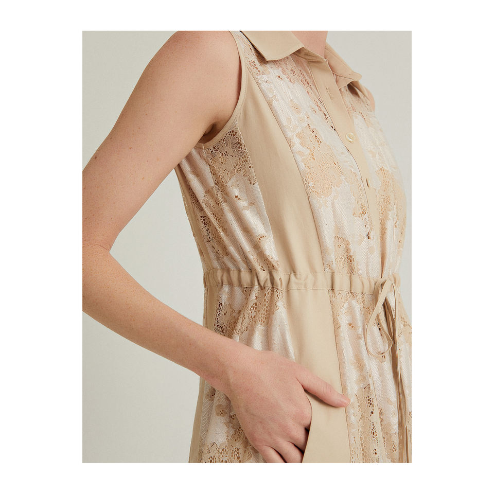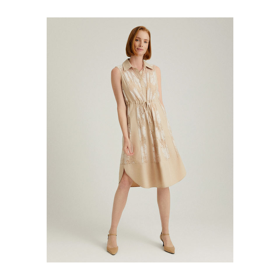 เดรสเชิ้ตผ้าลูกไม้แขนกุด-ชุดเดรสลำลอง