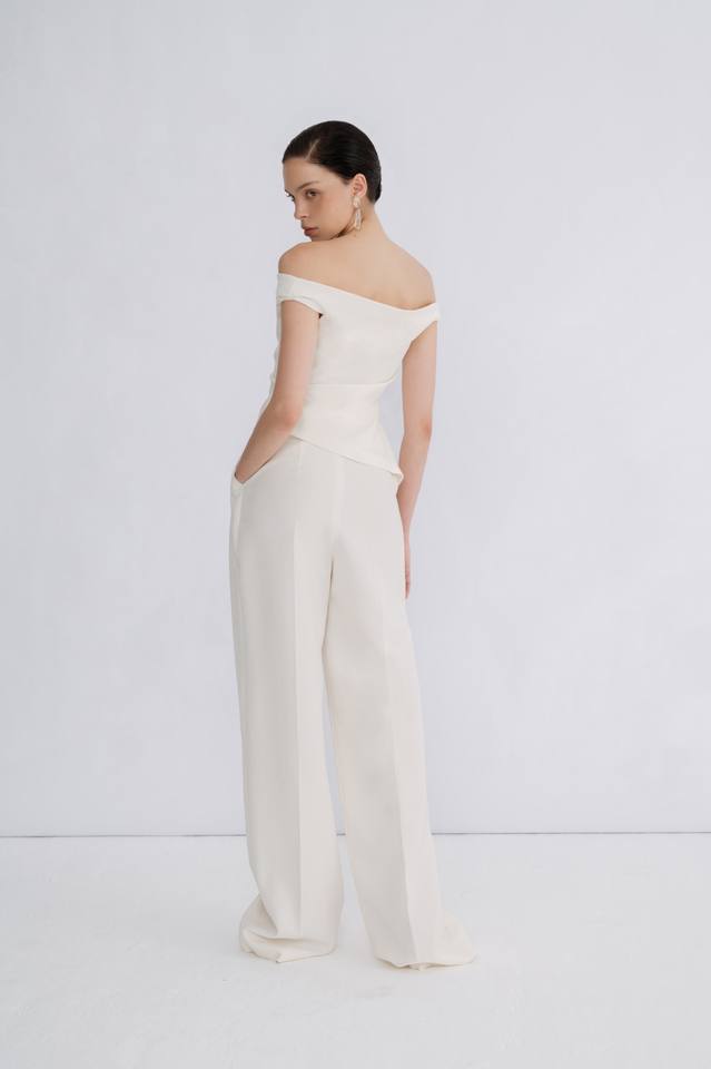 เสื้อผู้หญิงแขนกุดเสื้อ Vivien เสื้ออสมมาตรไหล่61% มีซิปที่ด้านข้างผ้าเรยอน39% ผ้าฝ้าย