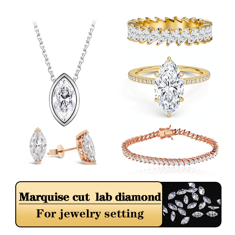 เพชรทรงมาร์ควิส ขนาด 1 กะรัต 2 กะรัต 3 กะรัต สี D ความสะอาด VS1 VVS2 ได้รับการรับรองจาก IGI เพชรสร้างในห้องปฏิบัติการ