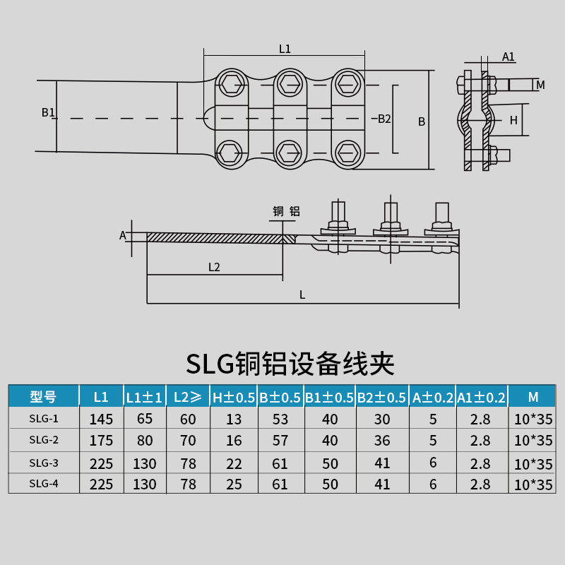 แคลมป์ยึดอุปกรณ์ทองแดงอะลูมิเนียม Slg 10-240 มม. 10kv อุปกรณ์เสริมตัวเชื่อมต่อสายไฟ สีเงิน พร้อมส่วนทองแดง