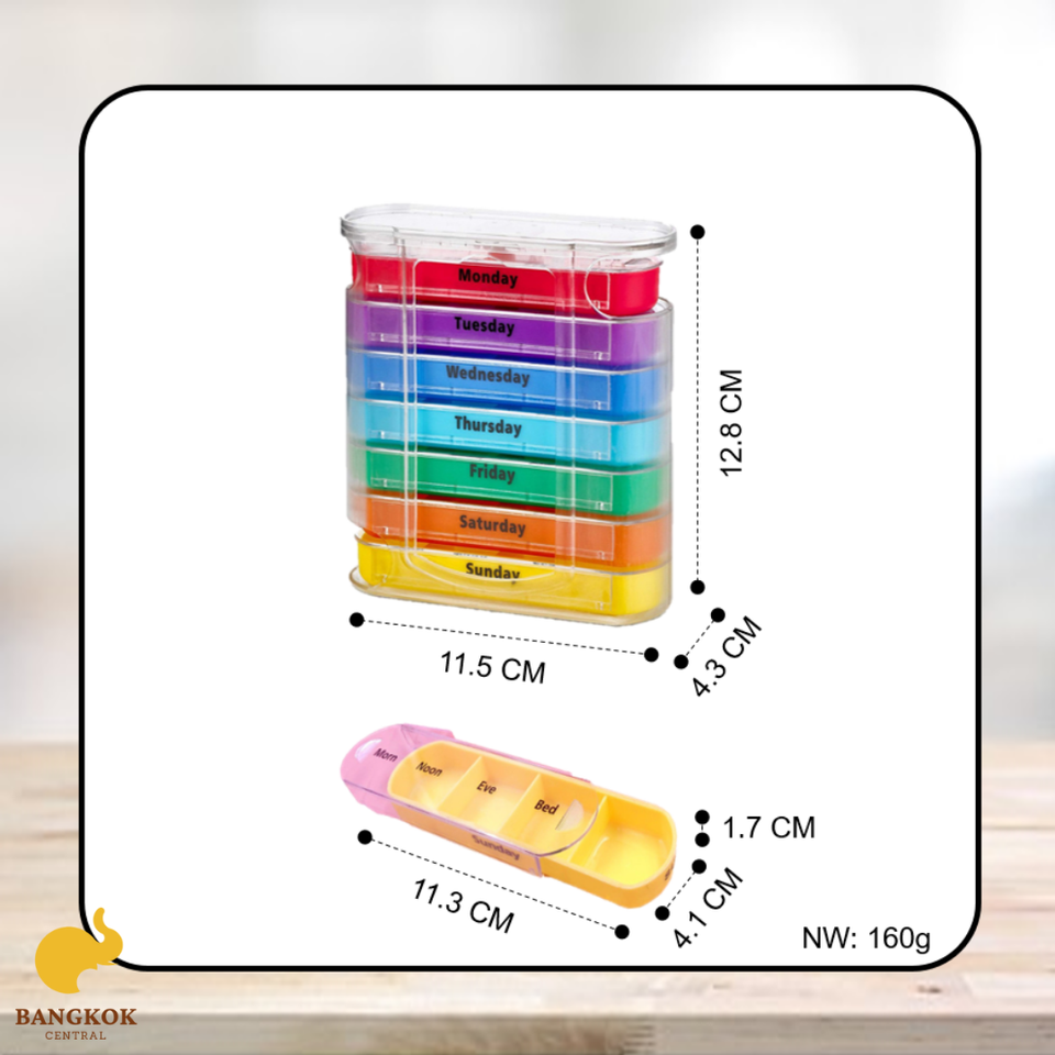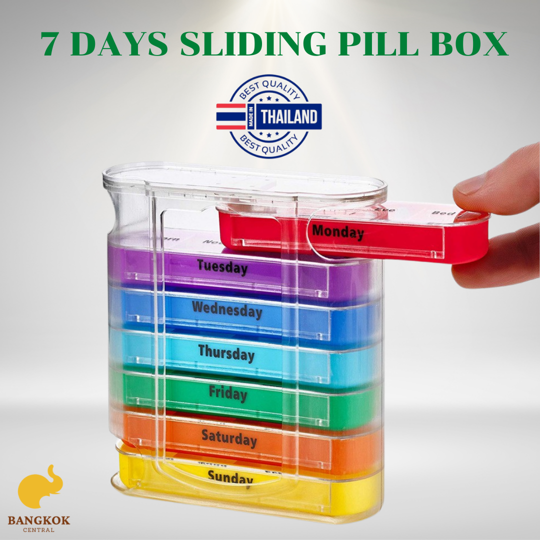 กล่องยาแบบเลื่อนได้ กล่องยาพกพาสำหรับเดินทาง 7 วัน กล่องใส่ยาสำหรับวิตามิน จากประเทศไทย