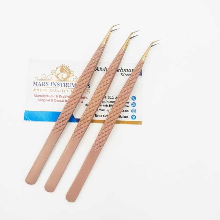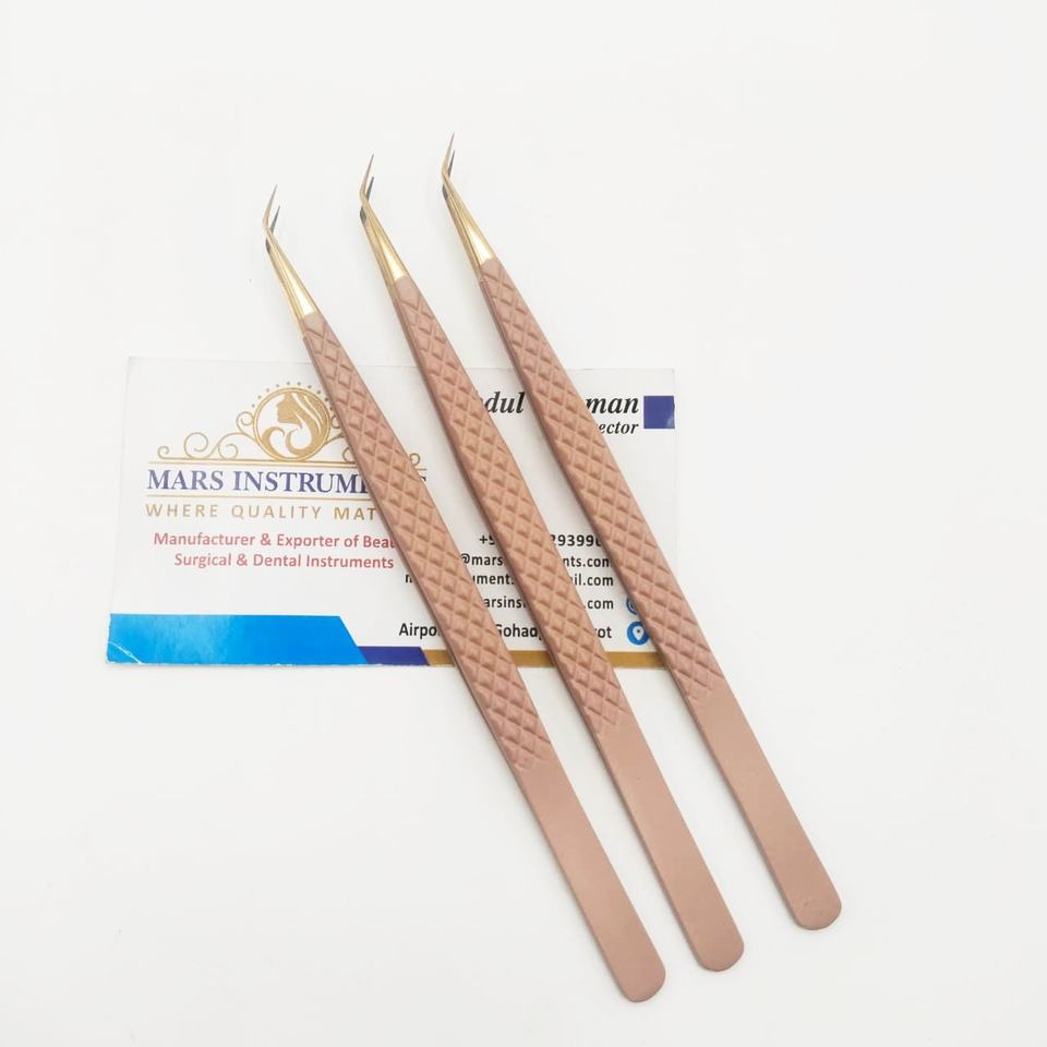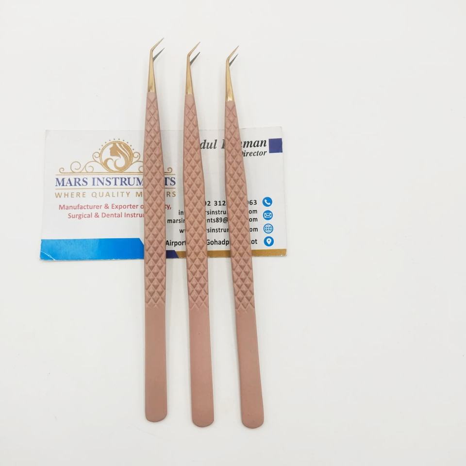 แหนบถอนขนตาปลอม45องศาแบบบางแหนบปลายนาโนปลายแหลมปลายแหลมสีน้ำตาลคุณภาพสูง