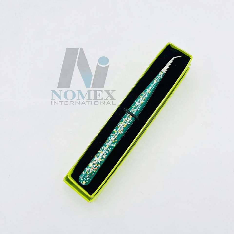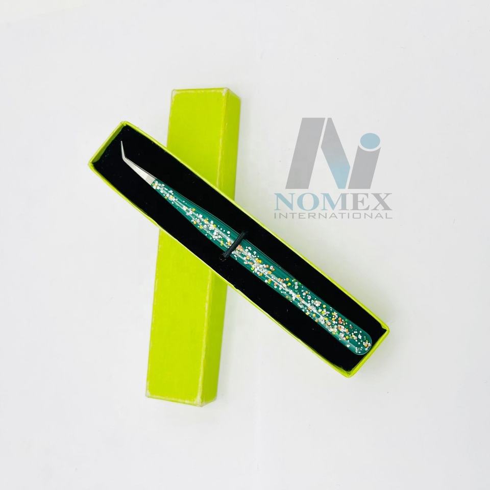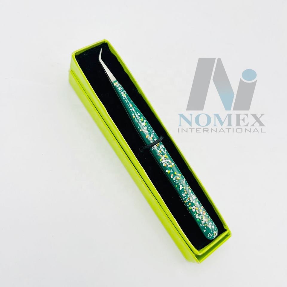 NOMEX INTERNATIONAL ET-AH-019 Eco-Friendly 45 Degree Slim Eyelash Tweezer Stainless Steel Silver Polished Corrosion Protective