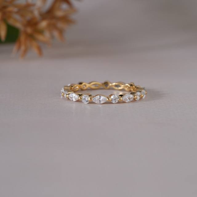 แหวนแต่งงานครบรอบทรงเพรียวบาง สง่างาม ดีไซน์ทันสมัย ประดับเพชรเจียระไนหลากหลายรูปแบบ ทองคำขาวผสมทองเหลือง สำหรับผู้หญิง
