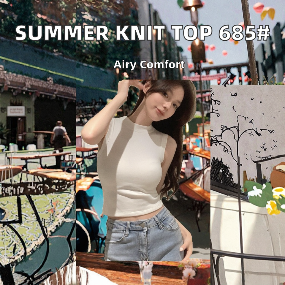 เสื้อครอปถักนิตติ้งสไตล์ลำลองสำหรับผู้หญิงทรงสลิมฟิต 685 # เสื้อกล้ามแขนกุดสำหรับฤดูร้อน เสื้อครอปสุดฮิตสไตล์ใหม่