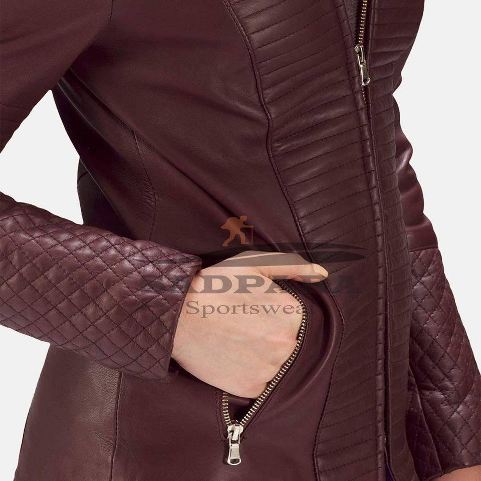 แจ็กเก็ตหนังผู้หญิงทรงสลิมฟิตพร้อมซิปเน้นให้เข้ากับชุดลำลองและชุดประจำวัน