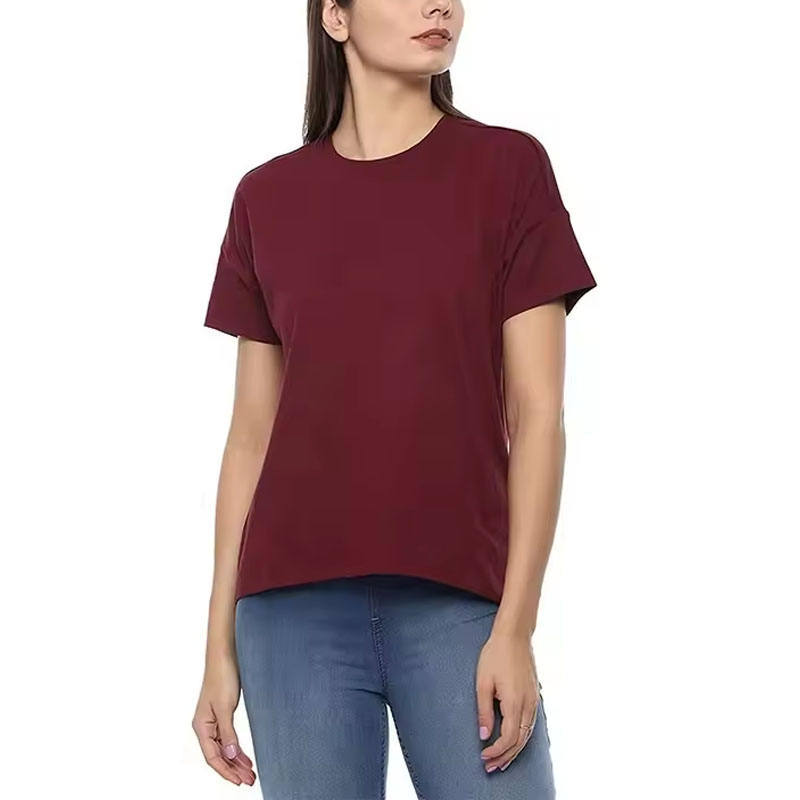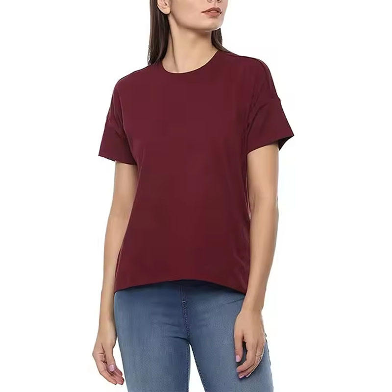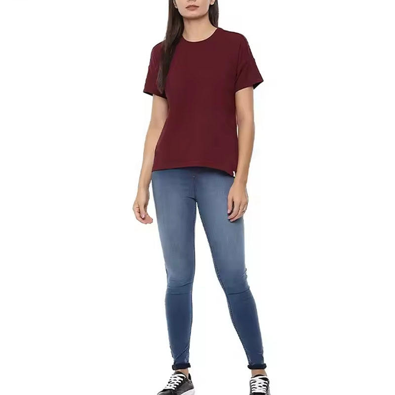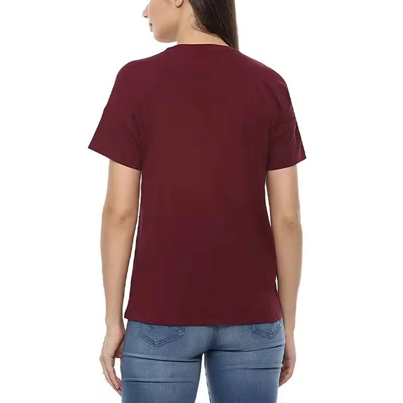 เสื้อยืดผู้หญิงทรงเข้ารูป สีแดงเลือดหมู สไตล์มินิมอล สตรีทแวร์ ใส่สบาย ขนาดปกติ แขนเสื้อระบายอากาศได้ดี ผ้าฝ้ายนุ่ม ใส่ได้ในฤดูร้อน